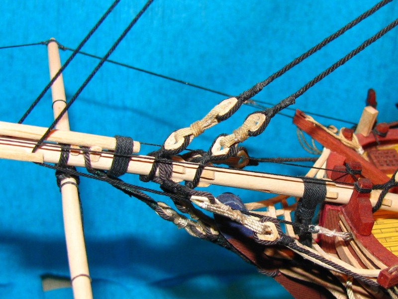 Węzłów wblinkowych nie zrobiłem z prostej przyczyny, o której Romek wspomniał - nie będą widoczne bez uzbrojenia oka w lupę. A po zakończeniu Bounty w planach jest budowa innej jednostki, w fornirze i innej skali - a efekty ...hmmm ... w swoim czasie.