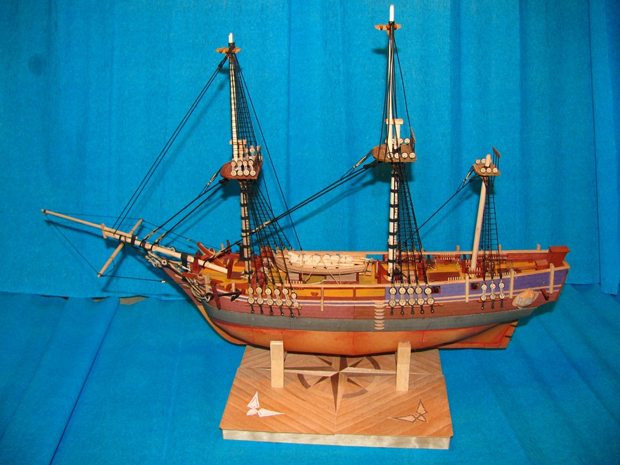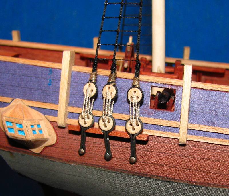 Węzłów wblinkowych nie zrobiłem z prostej przyczyny, o której Romek wspomniał - nie będą widoczne bez uzbrojenia oka w lupę. A po zakończeniu Bounty w planach jest budowa innej jednostki, w fornirze i innej skali - a efekty ...hmmm ... w swoim czasie.