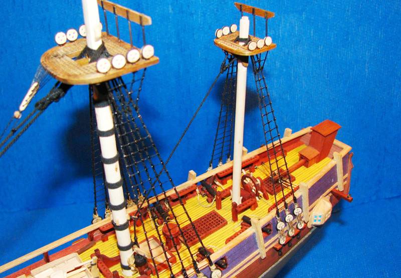 Węzłów wblinkowych nie zrobiłem z prostej przyczyny, o której Romek wspomniał - nie będą widoczne bez uzbrojenia oka w lupę. A po zakończeniu Bounty w planach jest budowa innej jednostki, w fornirze i innej skali - a efekty ...hmmm ... w swoim czasie.