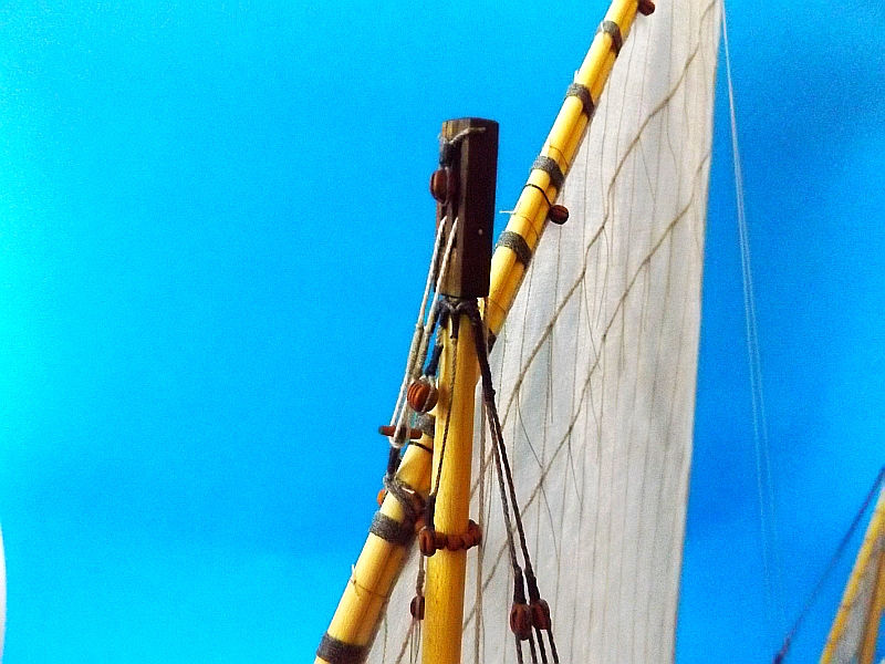 Naprawiłem reflinki i mocowanie żagli do rejek. Teraz jest znacznie lepiej.