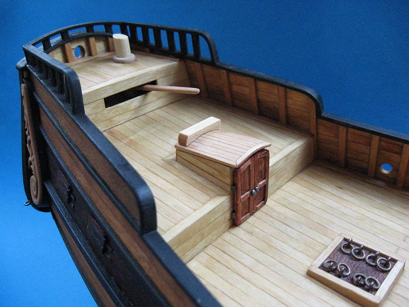 Po wnikliwej analizie literatury zdecydowałem, że ster zbuduję zgodnie z planami z zestawu, jednak wyposażę go w dłuższe sztaby i bolce zawiasów, a także wykonam fazowanie krawędzi steru od strony kadłuba. Mam nadzieję, że te eksperymenty pozostaną w miarę wierne historycznej prawdzie, a zapalonych i nadgorliwych "szkutników" nie będą kłuć w oczy.