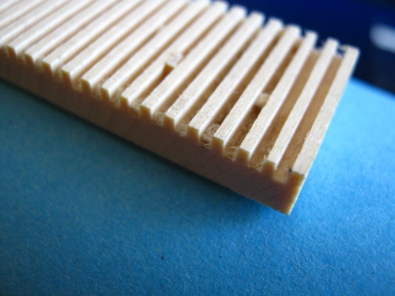 Jednak lepiej najpierw powycinać sobie 1mm listewki, złączyć je i dopiero wtedy robić "grzebień".