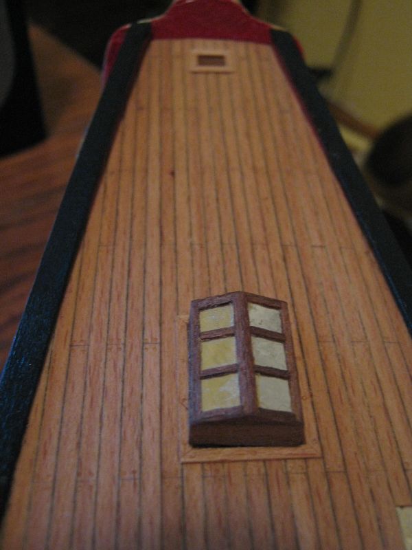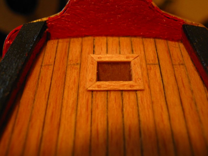 - miałem parę "plastrów" tego forniru, niby jeden, ten sam gatunek a jednak różnił się odcieniami i cała łajbka taka ciapkowata wyszła. Poza tym, mocno widoczne słoje, malutkie sęki i zróżnicowana struktura forniru. Przy następnym modelu będę wiedział, aby nie używać do poszywania tak "ozdobnego" drewna a zastosować raczej jakieś bardziej jednolite.