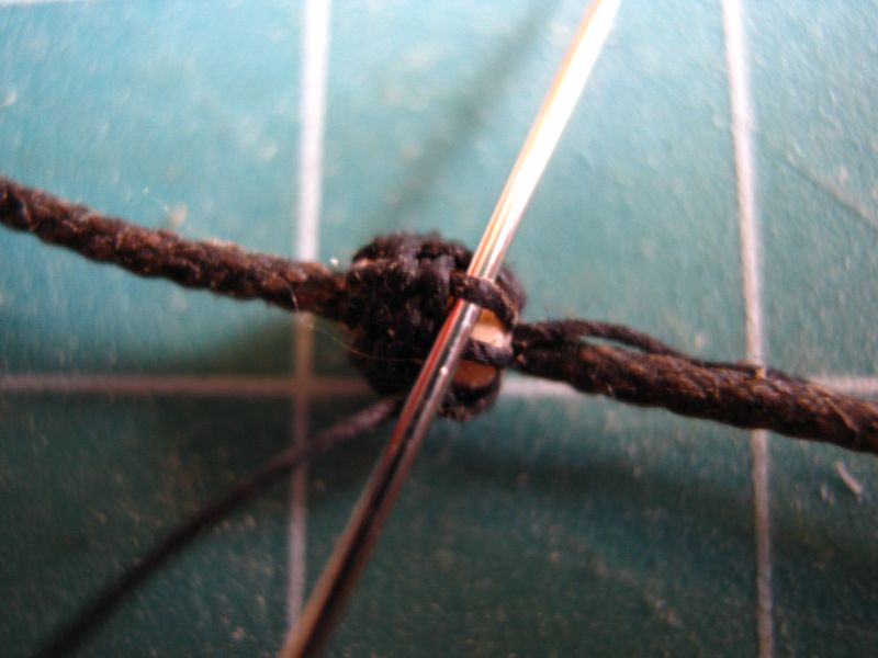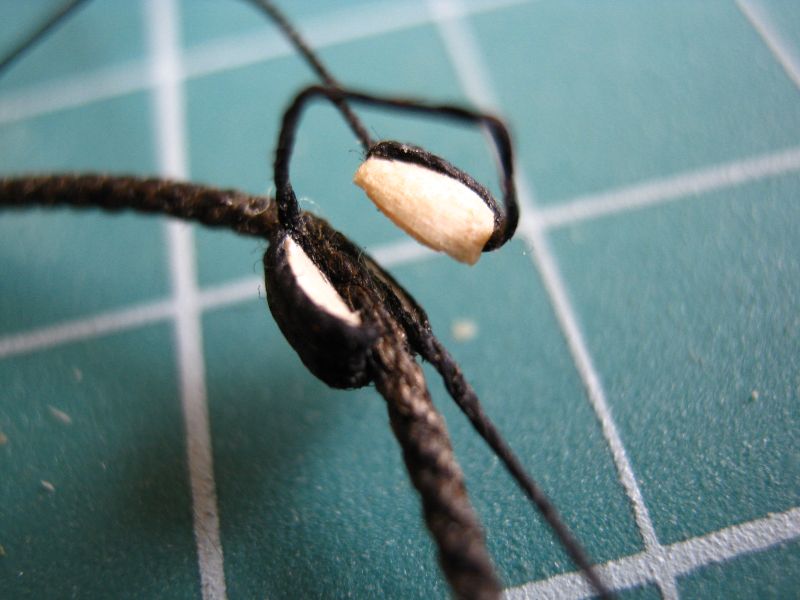 Nitka była najpierw opalona, przeciągnięta przez wosk pszczeli a później kilka razy przeciągana między palcami. Myślę, że teraz efekt jest lepszy.