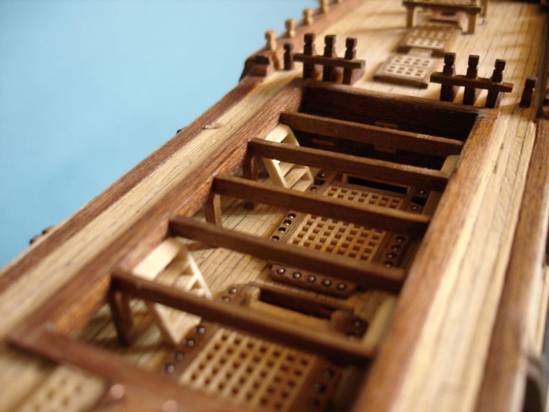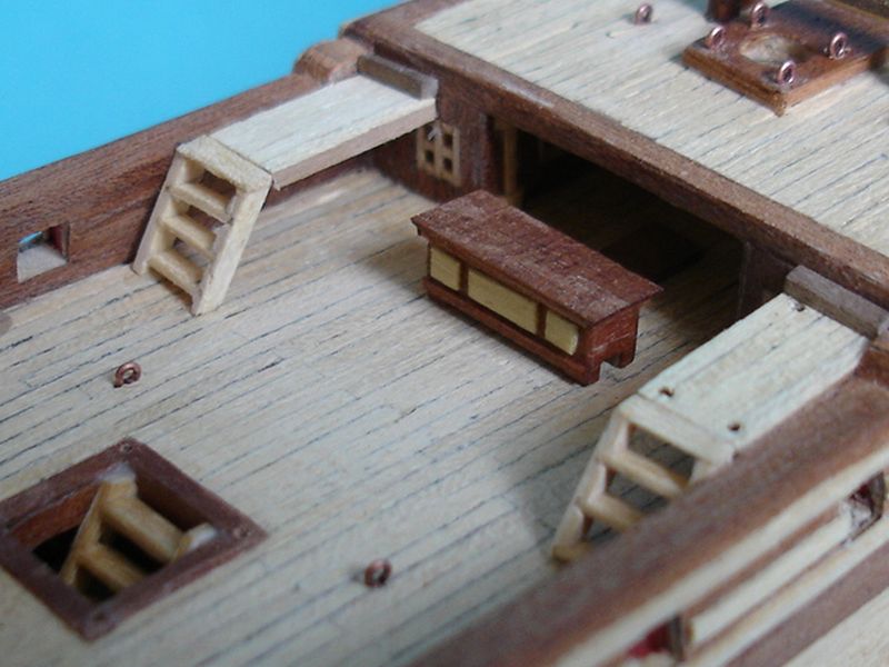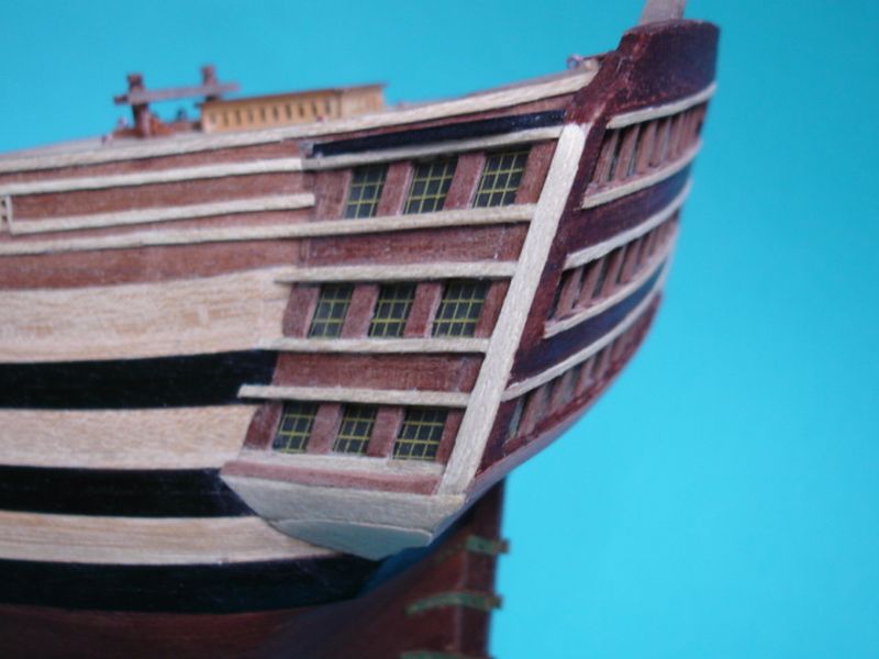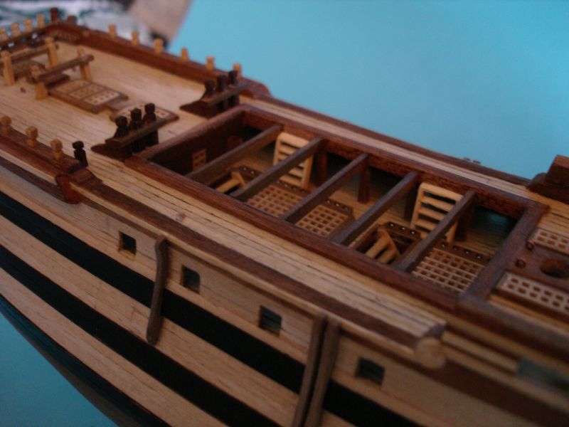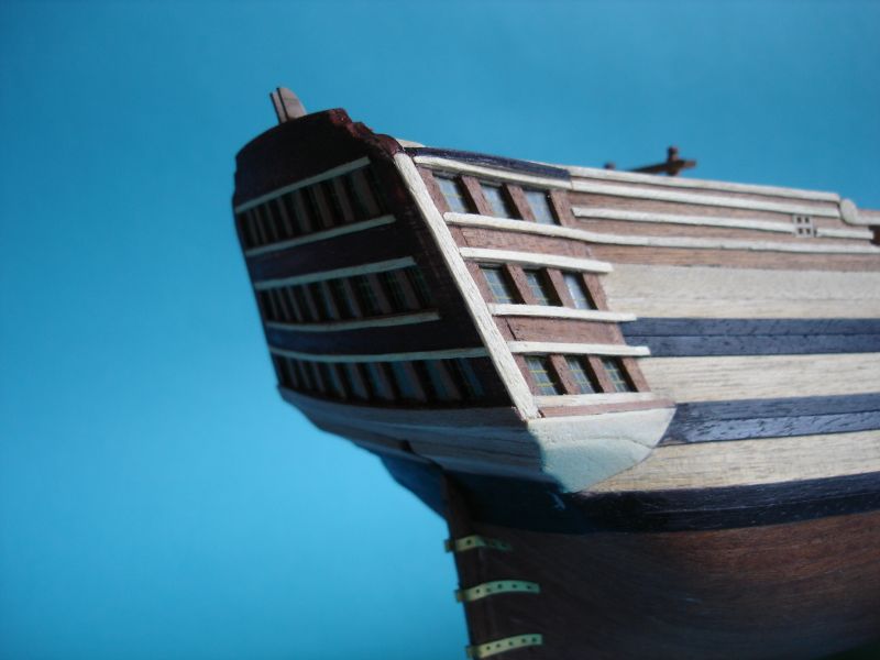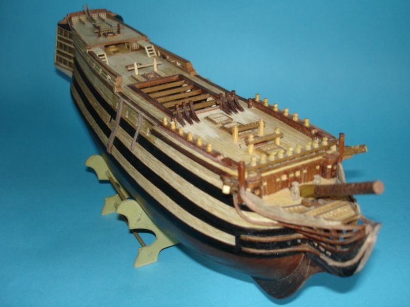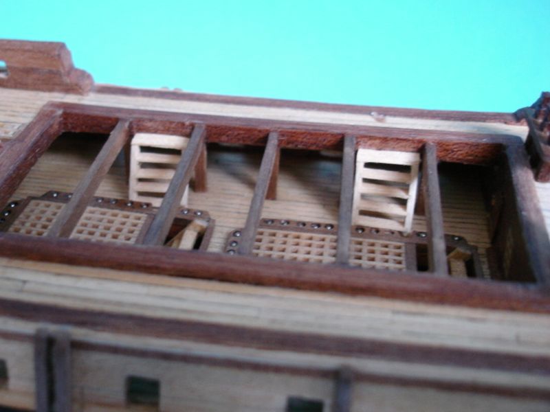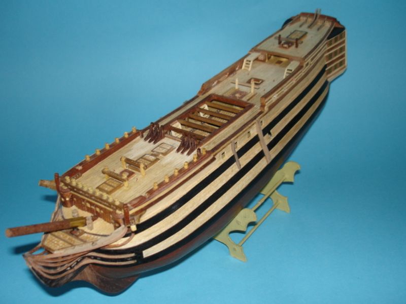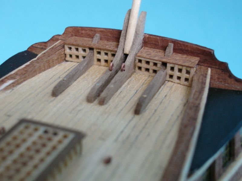 Po przerwie ponownie witam kolegów kogowiczan. Przez tak długi okres przerwy nie wykonywałem żadnych prac w stoczni remontowej. Jednak postanowiłem zabrać się za dalszą robotę. Udało mi się zakończyć galerię i dodać parę elementów na pokładzie, jak: cztery wsporniki na rufie, świetlik, schody z pokładu rufowego, schodnie pod pokład, kołkownice, pachoły. Najwięcej problemu przysporzyła mi galeria. W tej chwili jest jakby w stanie surowym. W najbliższym czasie chciałbym zająć się zdobieniami. W najbliższym czasie mam zamiar zamontować bukszprut, narazie bez bomstengi i ławy tarlepowe. To by było na tyle.
