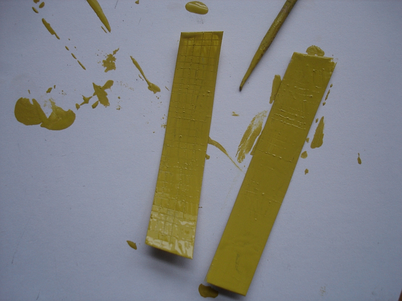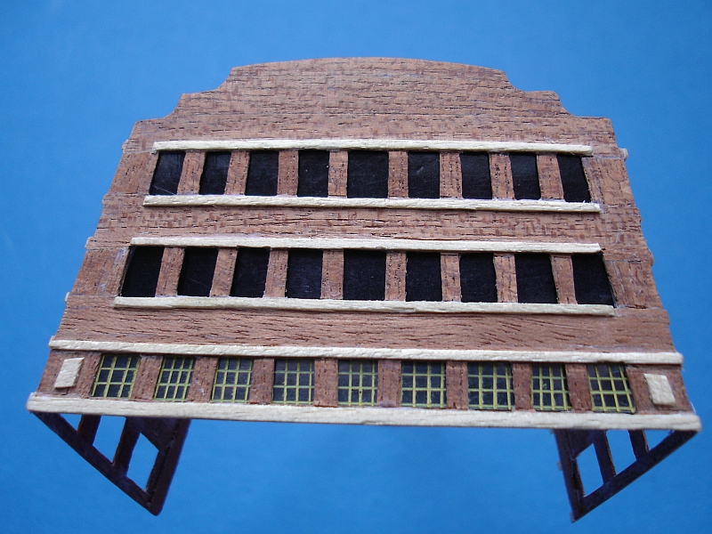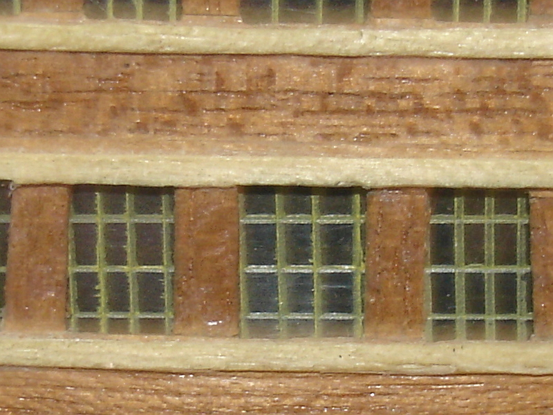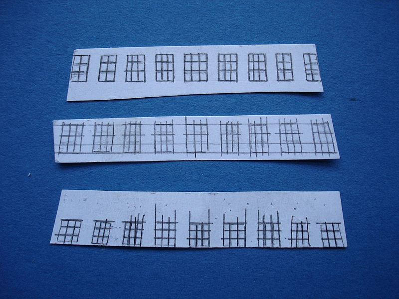 W ten sposób powstały rowki, w które to wtarłem farbę (HUMBROL - 81). Po wytarciu naddatków farby powstała imitacja ramek okiennych. Sądzę, że efekt jest w/g mnie poprawny.