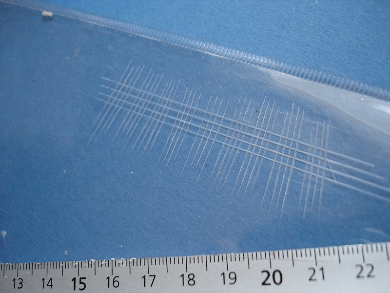 Szybki są wykonane z pleksi. Zgadza się. Są ponacinane nożykiem. Odstępy nie są równe, ale w końcowym efekcie będą równe. A jeżeli chodzi o ukosowanie? To tak sam nie wiedziałem, czy maja być proste, czy ukośne. Myślę, że lepszy będzie efekt, gdy będą proste.