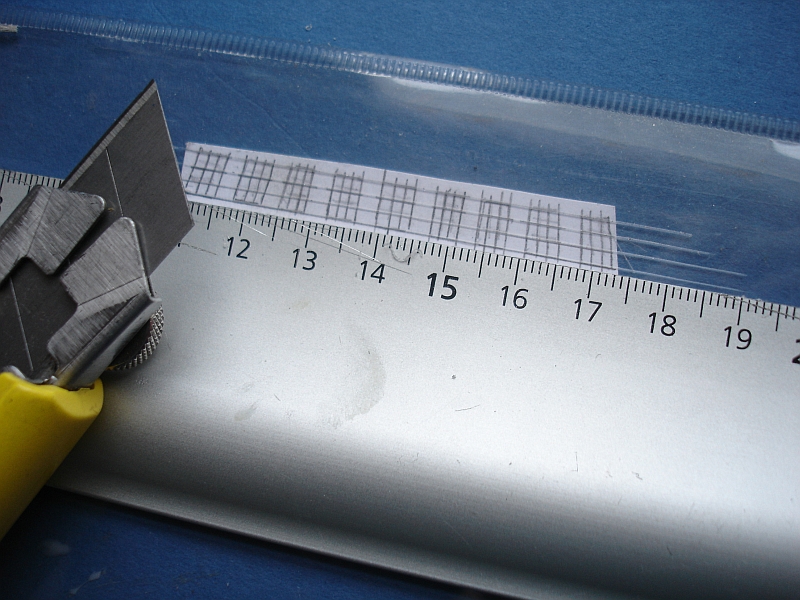 po opi...alu przez myszora, postanowiłem zrobić próbkę wykonania szprosów, a właściwie ramek okiennych metodą, jaką mi zasugerował Adam (oksal). Do wykonania szyb użyłem plastikowej teczki na dokumenty. Wykonałem na bristolu szablon z zarysami szprosów, w przyszłości jako szablonu użyję papieru milimetrowego, i umieściłem go między przeźroczystymi arkuszami teczki. Potem tępym nożykiem ponacinałem rowki według linii na szablonie.