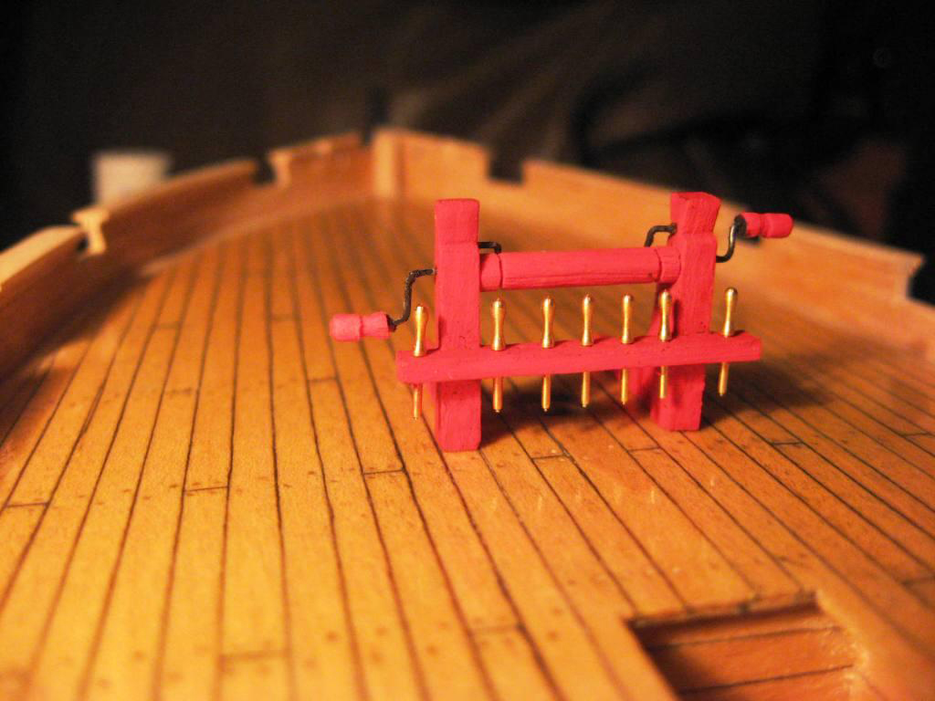Witam Wszystkich. Dawno nic nie opublikowałem bo i nie ma się czym chwalić. Prace bardzo powoli posuwają się do przodu. Udało się zrobić obie kotwice, wyciągarkę oraz armaty. „Uzbrajam” burty i pokład w wyposażenie. Obecnie zabrałem się za wiązanie bloczków.
