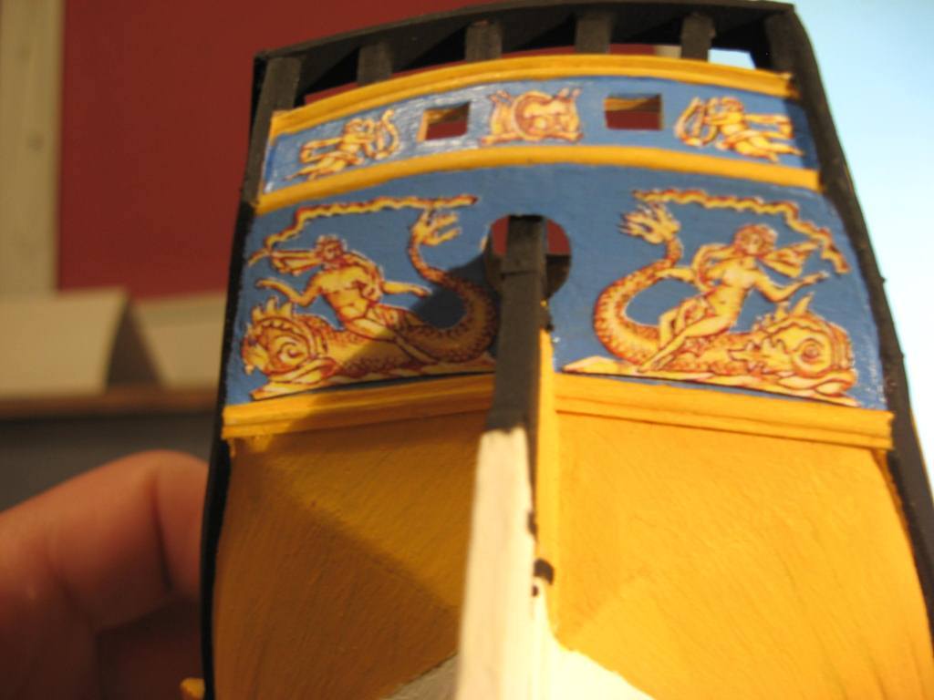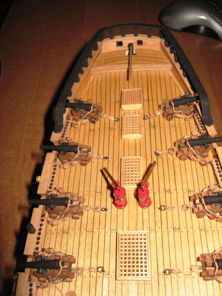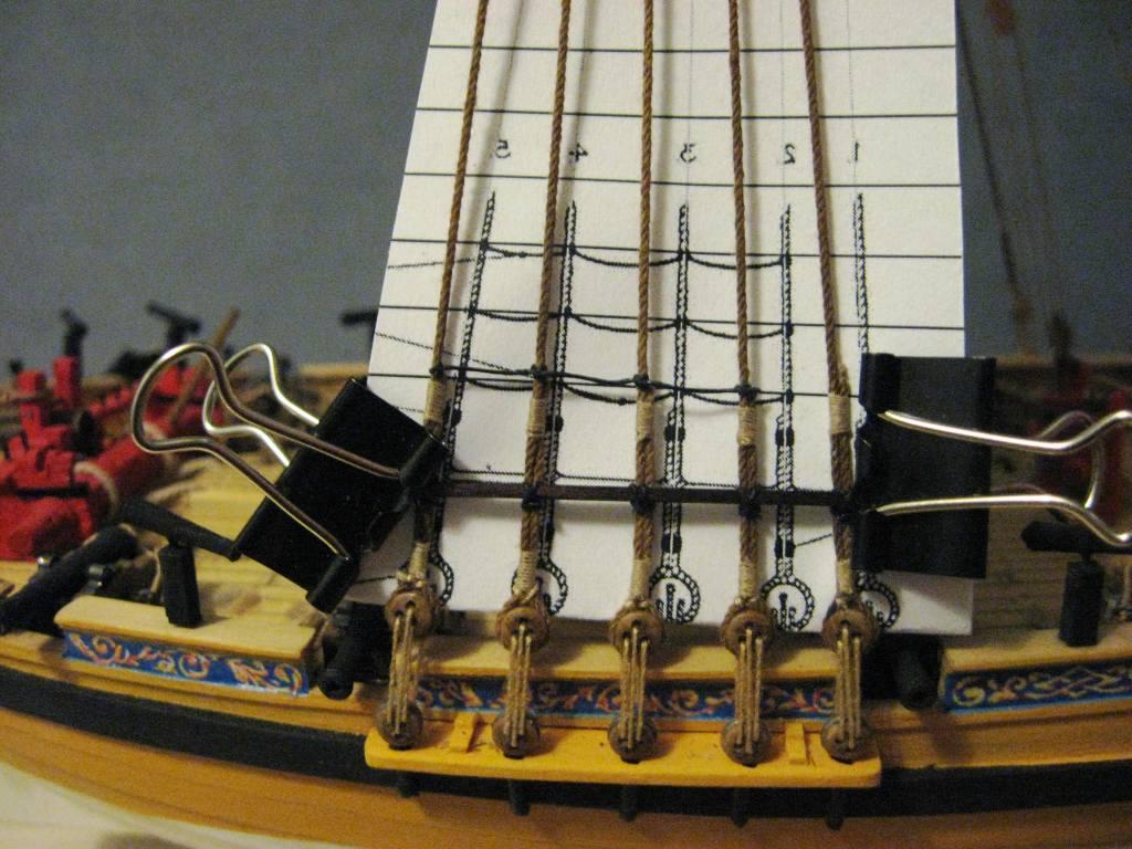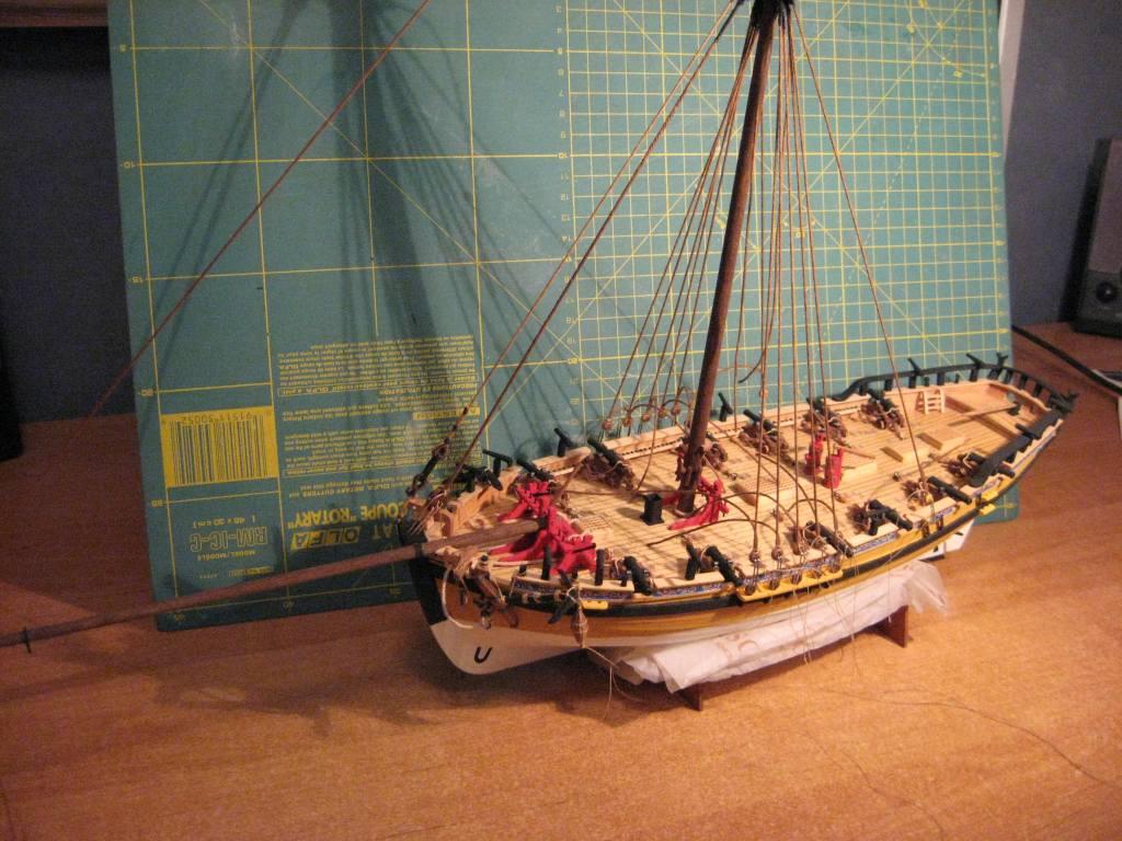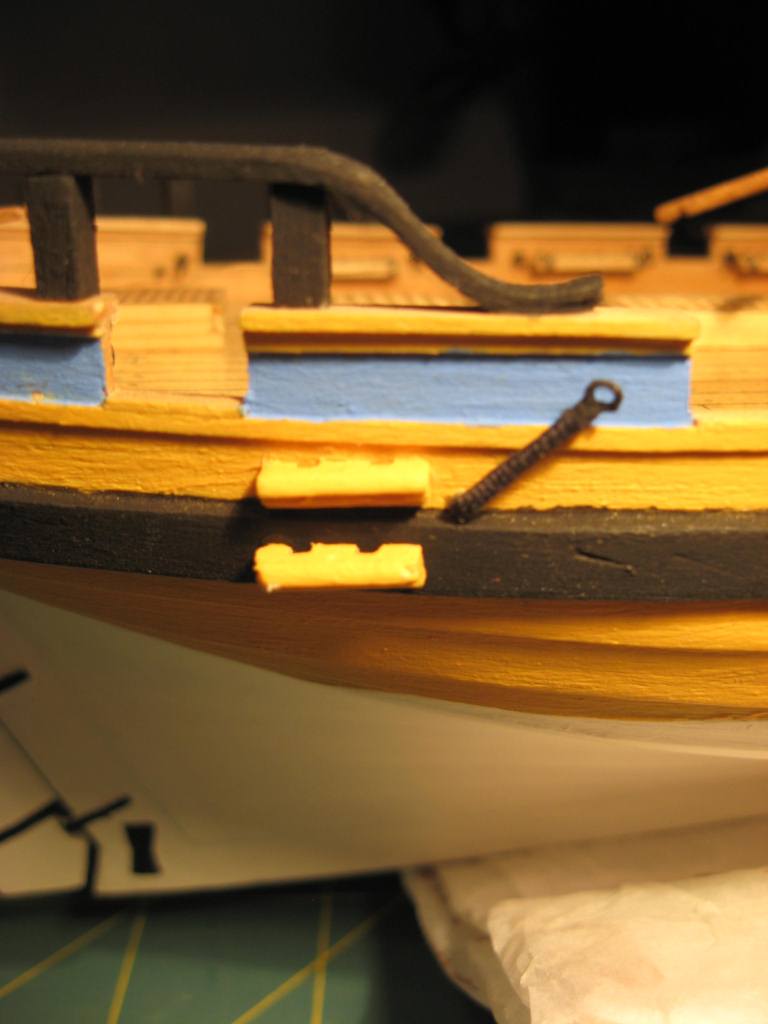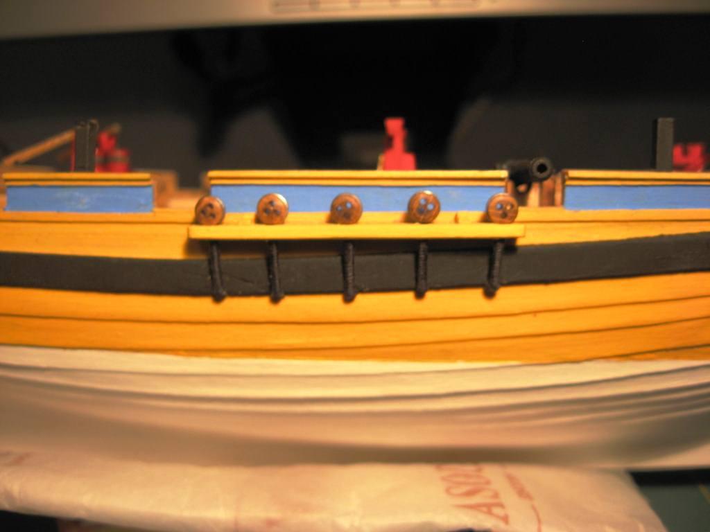Burty nabrały koloru, pojawiła się kotwica na sterburcie oraz kończę uzbrajać Alerta w falkonety. Jednocześnie pracuje nad masztem.