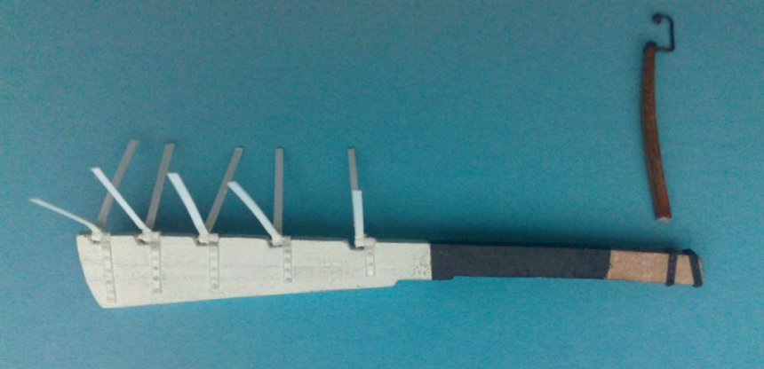 Ps. Na modelu przybyły jeszcze słupki pod falkonety, kotbelki i takie dodatkowe belki ( chyba do podnoszenia kotwicy na ławę wantową ).Zdjęcia całości - przy okazji :)