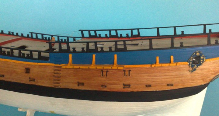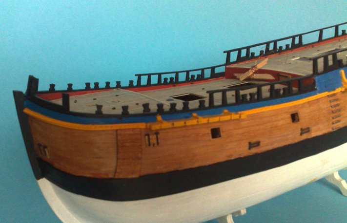 Ps. Na modelu przybyły jeszcze słupki pod falkonety, kotbelki i takie dodatkowe belki ( chyba do podnoszenia kotwicy na ławę wantową ).Zdjęcia całości - przy okazji