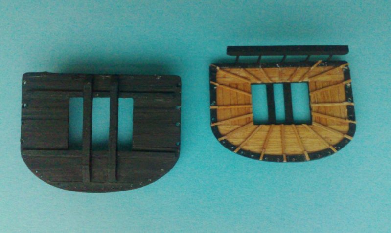 Kuba, rób cztery- więcej czasu spędzisz przy modelu;) Wiem o której belce mówisz- ja jej nie zrobiłem. Belka ta występowała w jednej sztuce. Okucia ją mocujące po jednym na każdej burcie w części dziobowej. Na rysunkach znajdziesz.