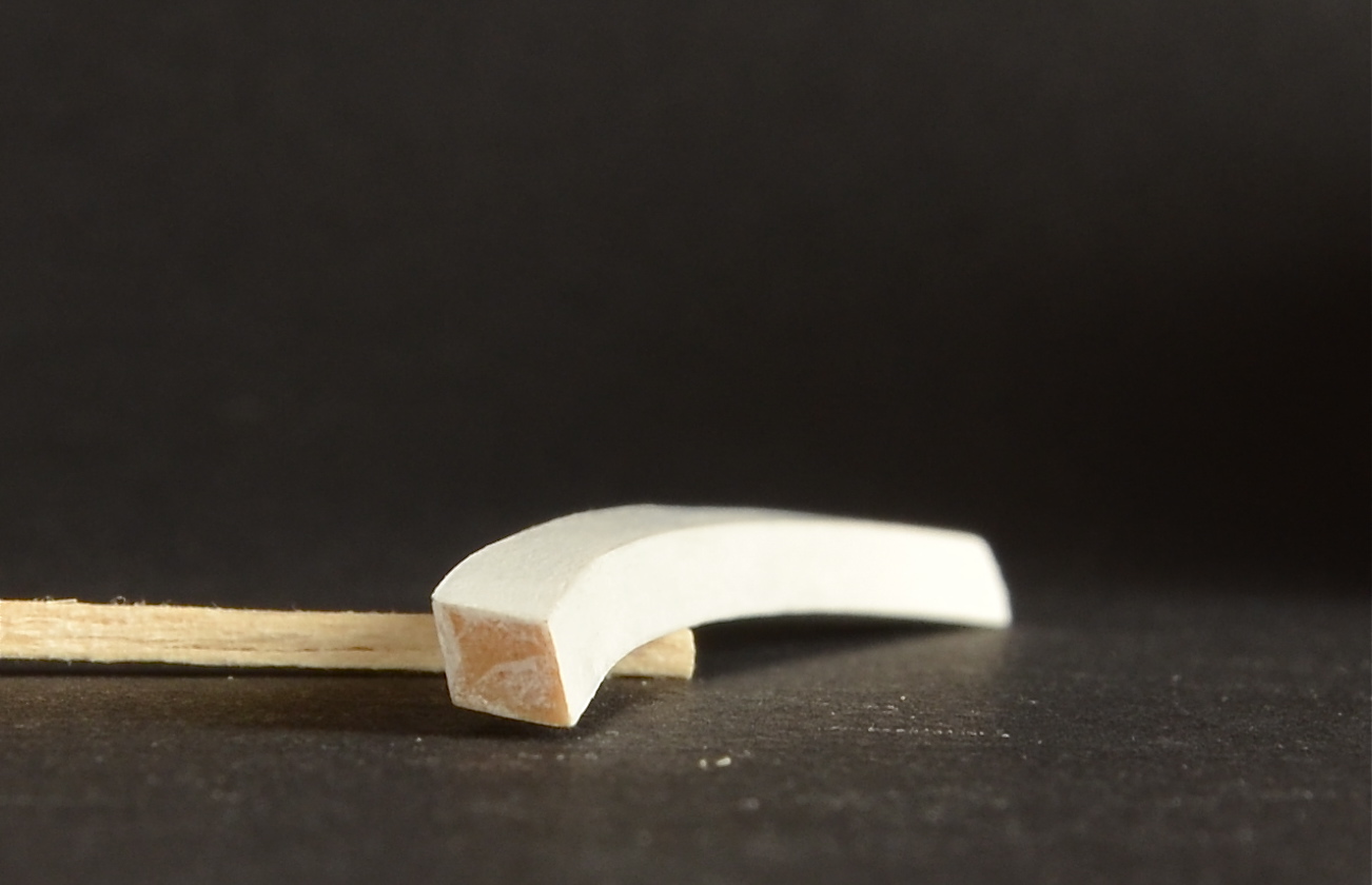 Kolejne trzy były już przyklejane wyłącznie do pierwszej. Po wyschnięciu całego elementu odciąłem go od szablonu i tak jak poprzednio wstępnie oszlifowałem, zalałem superglue, ponownie oszlifowałem i ostatecznie pomalowałem.