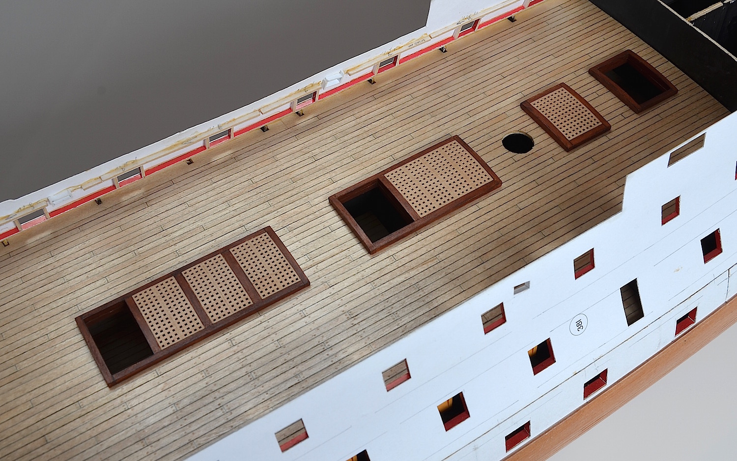 Poszycie na części dennej kadłuba skończone. Tak to się mniej więcej prezentuje. Poszycie nie jest jeszcze ostatecznie wyszlifowane, stąd widoczne gdzieniegdzie nierówności pomiędzy plankami.