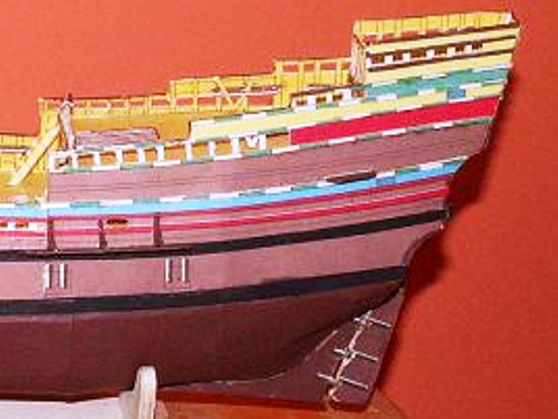 Witaj! Dawno nie robiłem w papierze, ale tak patrząc na to, co stworzyłeś to mam kilka uwag. Jeżeli jak twierdzisz dałeś piankę pod poszycie to chyba nie za bardzo to wyszlifowałeś, bo ci wylazły żeberka a jak masz zamiar to przemalowywać to może warto by było zerwać te poszycie i porządnie doszlifować. Druga sprawa to mimo że zdjęcie jest zrobione z daleka to widać, że nie za bardzo się przyłożyłeś do wycinania otworów w burtach, bo i z stąd widać ze nie najrówniej jest a szkoda, bo takie drobiazgi w dużej mierze rzutują na wygląd modelu. Warto by się może pokusić tez o retusz brzegów na trapach czy właśnie na tych otworach by ukryć ten biały papier wystarczy użyć choćby mazaka w odpowiednim kolorze i już będzie lepiej. Poczytaj trochę o sposobach i technikach przy budowie z papieru na pewno ci to dużo wyjaśni i pomoże.