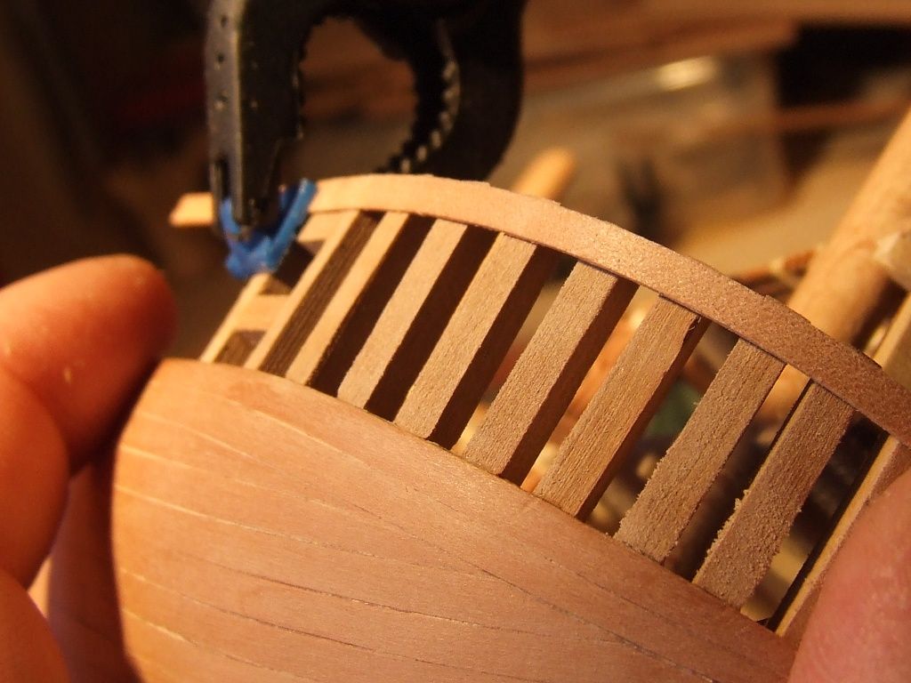 Romku imitacja wręg nie licząc dziobu wygląda dobrze. Na dziobie wyszły barierki balkonowe. Tak mi się wydaje. Ja bym to poprawił.