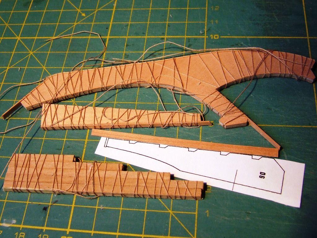 "Naprawiony" dziób i przyklejone parę planek wzmacniających imitację wręg.
