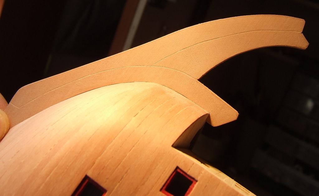 Dopasowanie stewy dziobowej. Tu trzeba dokładnie dopasować i doszlifować.