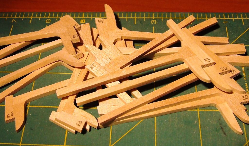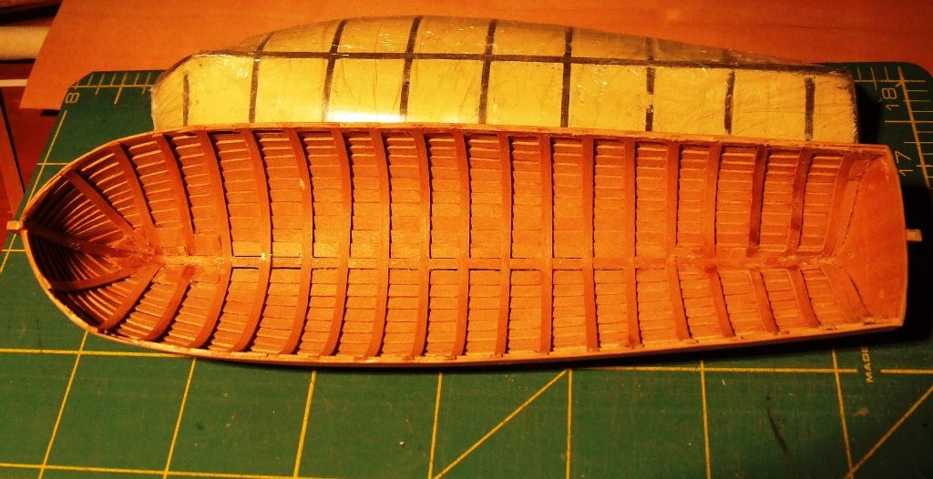 Druga "półszalupa". Czyli szalupa w przekroju do przekroju modelu. Ta ma 31szt. 1 mm wręg z forniru.
