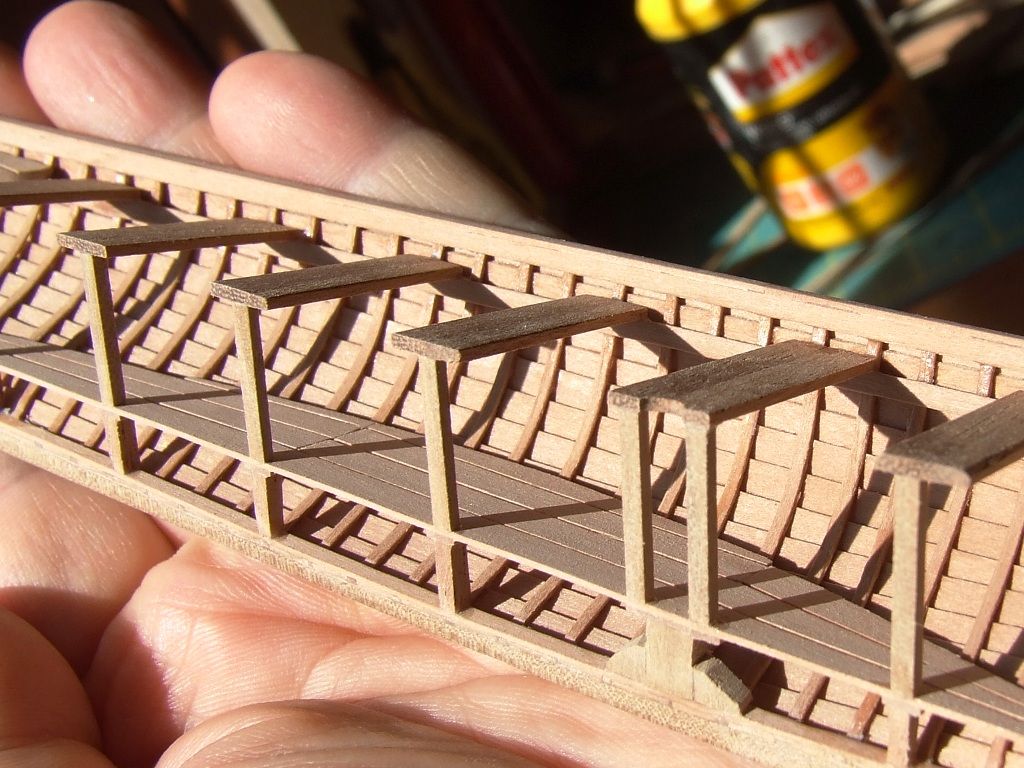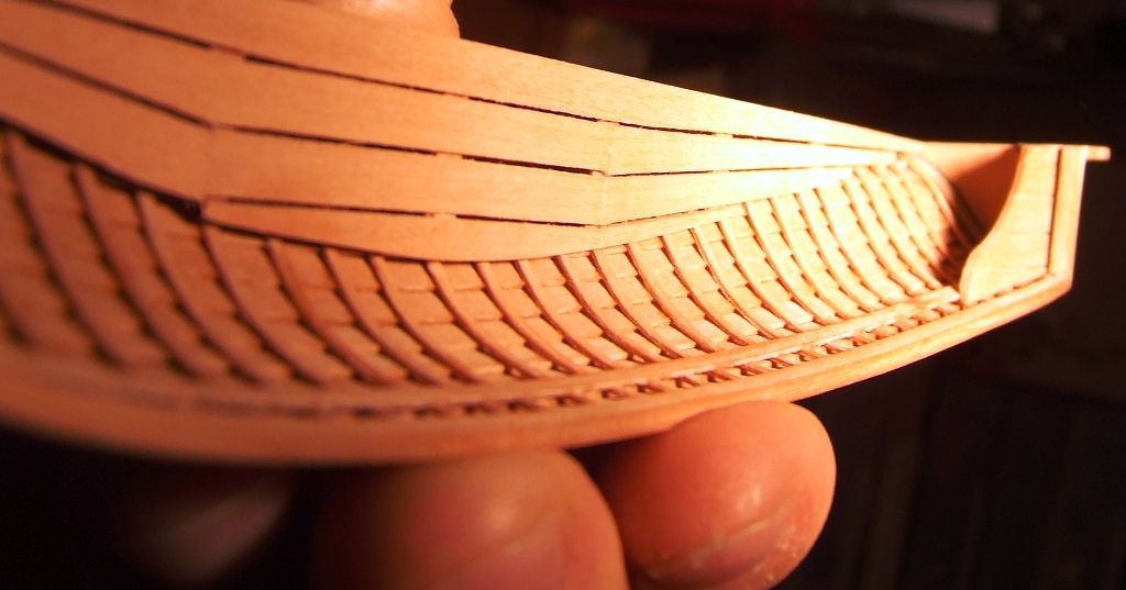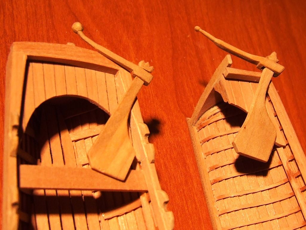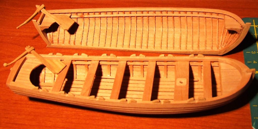 Romek zawstydził Dynamomena. Zrobił 1,5 szalupy :-) Co to za niewidoczny klej używałeś i ile Ci zeszło na tą połówkę ? Piękna robota. Choć zdaje mi się że w jaśniejszym drewnie jest ciut prościej :-) Ale mogę się mylić.