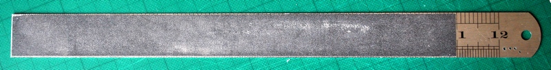 Aby wygodniej się wycinało przygotowałem sobie do tego celu odpowiednie narzędzie. Metalową linijkę podkleiłem drobnoziarnistym, papierem ściernym. Linijka nie ucieka i się nie przesuwa po ciętym materiale. Nie muszę jej już dociskać aż tak mocno i mam pewność, że każde kolejne cięcie, przy raz przyłożonej linijce, bedzie w tej samej linii.