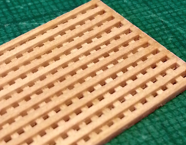 Tak Ryszardzie pamiętam. W moim przypadku gretingi są szersze niż dłuższe i dlatego to tak wygląda. Usprawniłem nieco metodę i wykonałem dziś kolejny greting z którego jestem już zadowolony. Tą metodą wykonam pozostałe. A zacząłem od nacięcia sobie listewek 1mm x 0,6mm z forniru olchowego. Próbowałem z bukowym (twardszy) ale przy cięciu na mokro skręca się jak świni ogon, a olcha nie. Listewki poprzyklejałem następnie na papierze samoprzylepnym tak by ciasno do siebie przylegały. Lekko przetarłem papierem.