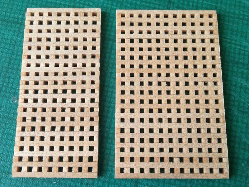 Tak Ryszardzie pamiętam. W moim przypadku gretingi są szersze niż dłuższe i dlatego to tak wygląda. Usprawniłem nieco metodę i wykonałem dziś kolejny greting z którego jestem już zadowolony. Tą metodą wykonam pozostałe. A zacząłem od nacięcia sobie listewek 1mm x 0,6mm z forniru olchowego. Próbowałem z bukowym (twardszy) ale przy cięciu na mokro skręca się jak świni ogon, a olcha nie. Listewki poprzyklejałem następnie na papierze samoprzylepnym tak by ciasno do siebie przylegały. Lekko przetarłem papierem.