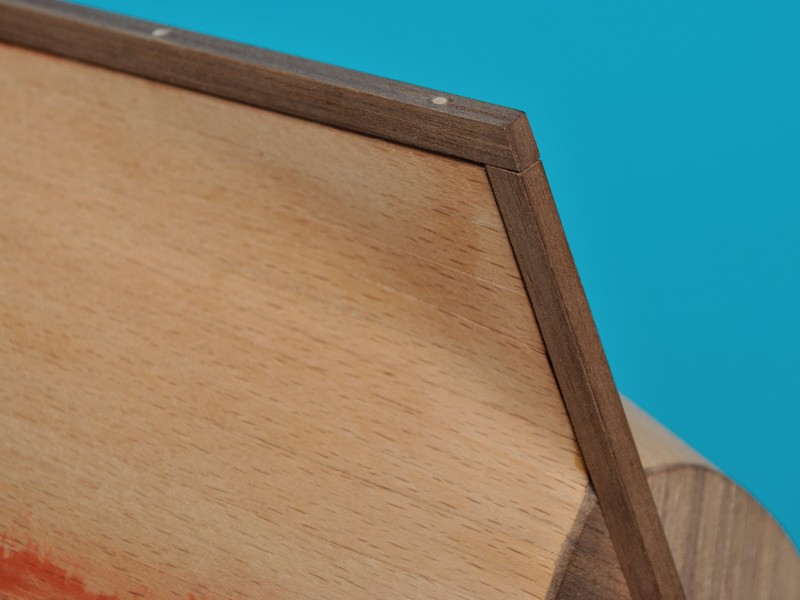 Zabrałem się za kil i stewy. Ponieważ z orzecha amerykańskiego nie mam nic grubszego niż fornir, zmuszony byłem wykombinować coś takiego: