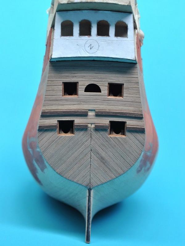 Stewę dziobową zrobiłem z tektury i okleiłem podobnie jak pozostałe elementy.
