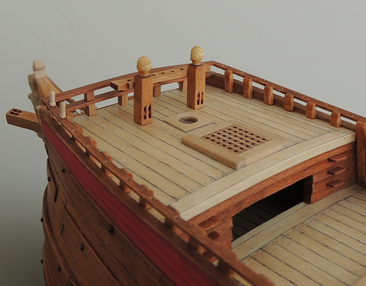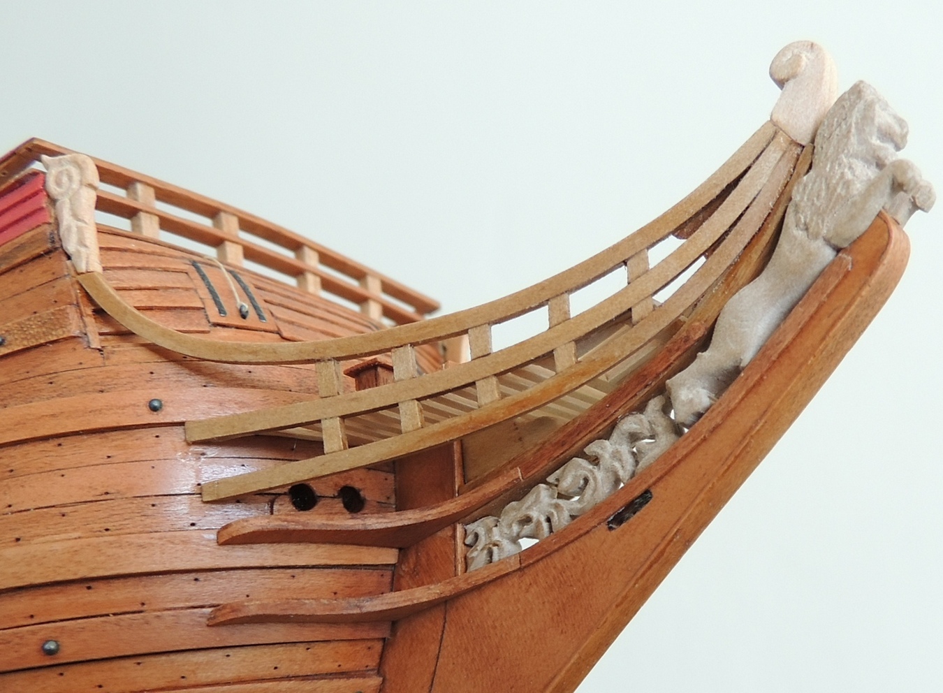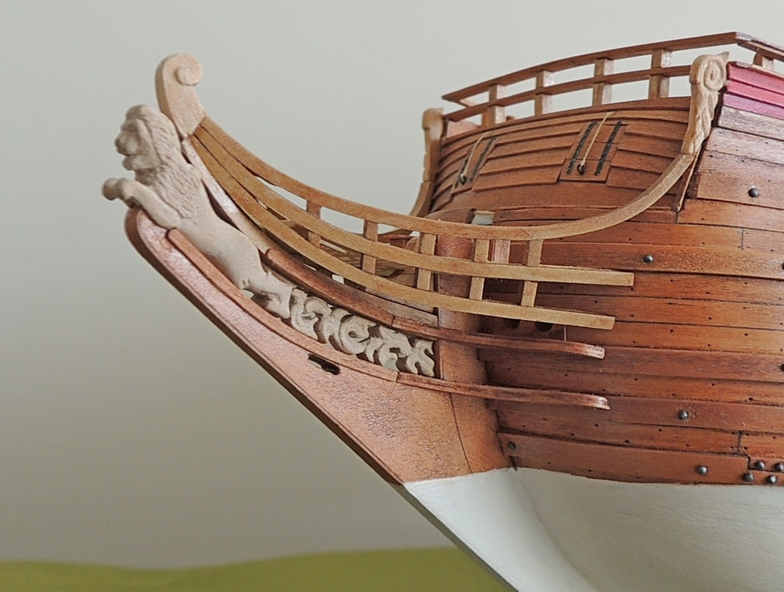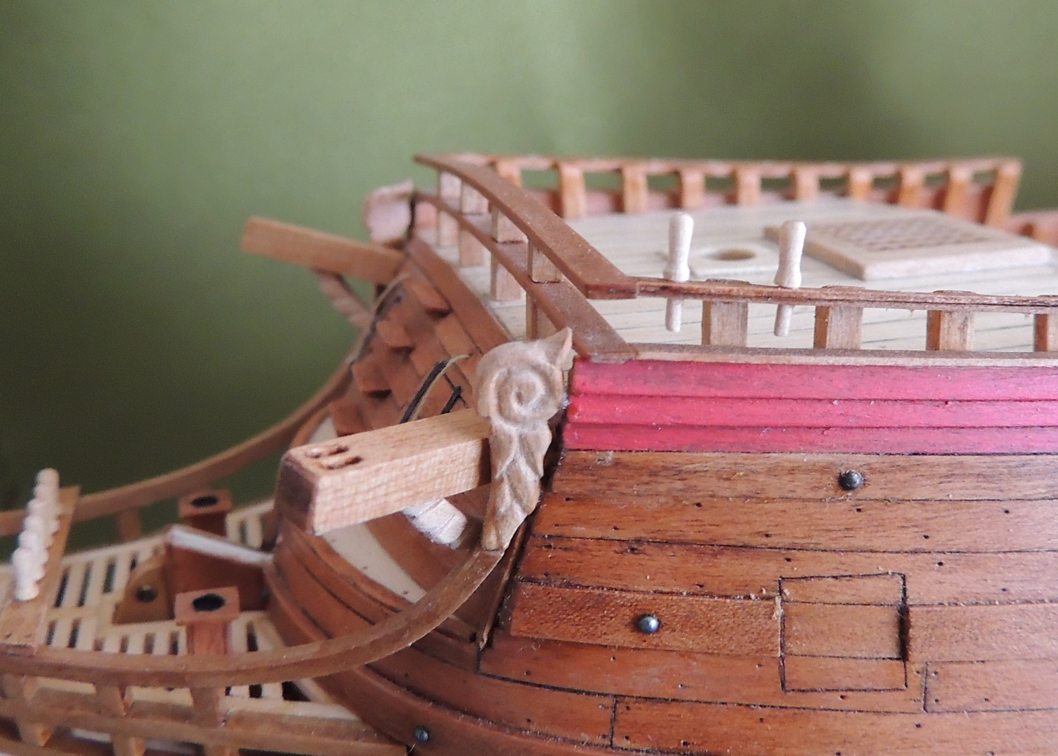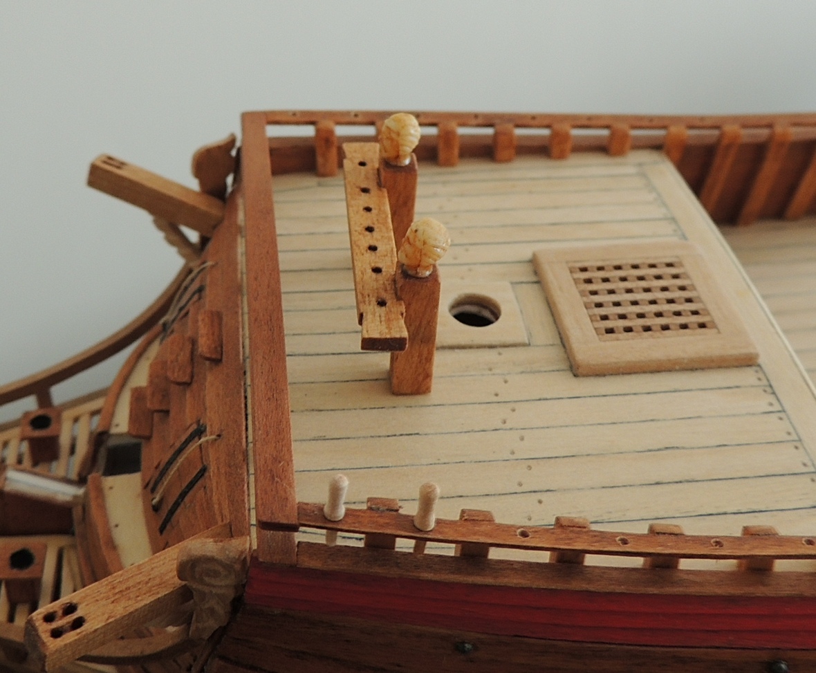 Witam. Świetna robota, pięknie wykonany kadłub, kolorek super, ale przyczepię się do nagli w kołkownicy. Wyglądają trochę topornie, znajdź kawałek małej wiertarki i wytocz sobie, to nic trudnego. Znacznie poprawi to wygląd całości, nawet jeśli nagle nie będą super powtarzalne.