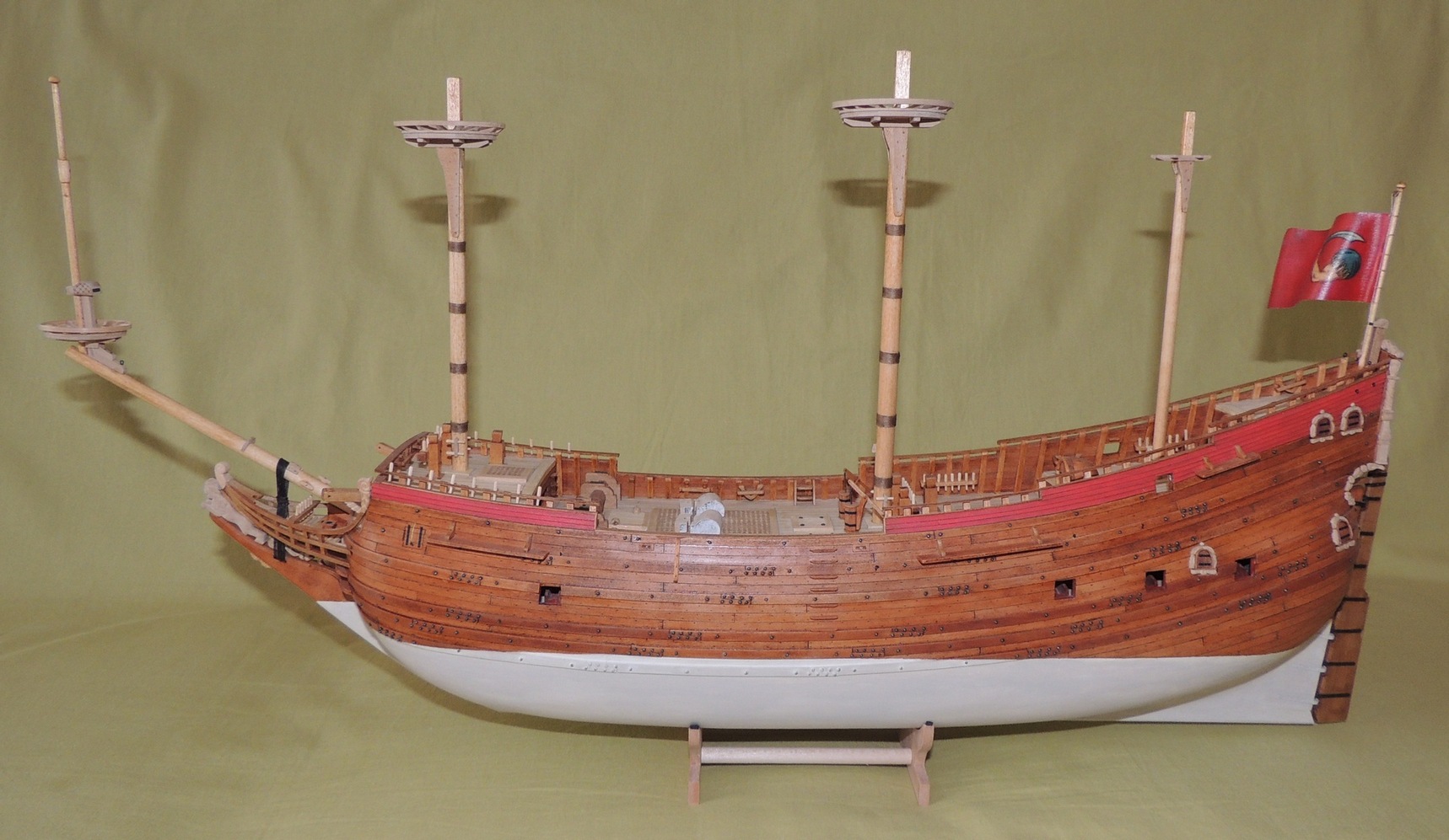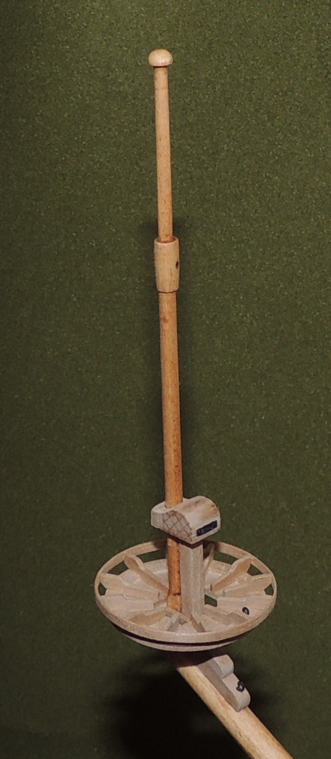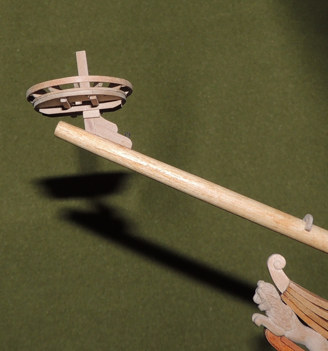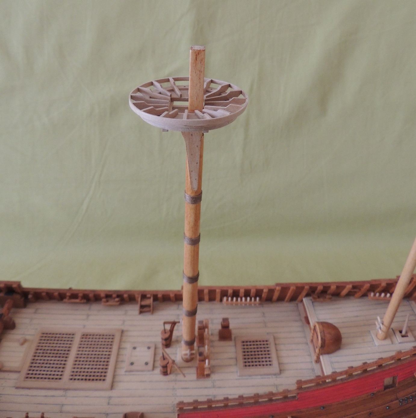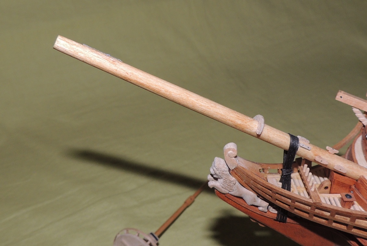 Już mnie kusi żeby go zamienić na mały flagsztok, taki jak to jest w Papegojanie. Ponoć nasze okręty nie posiadały żagli nadbukszprytowych. Przynajmniej tak wynika z rycin