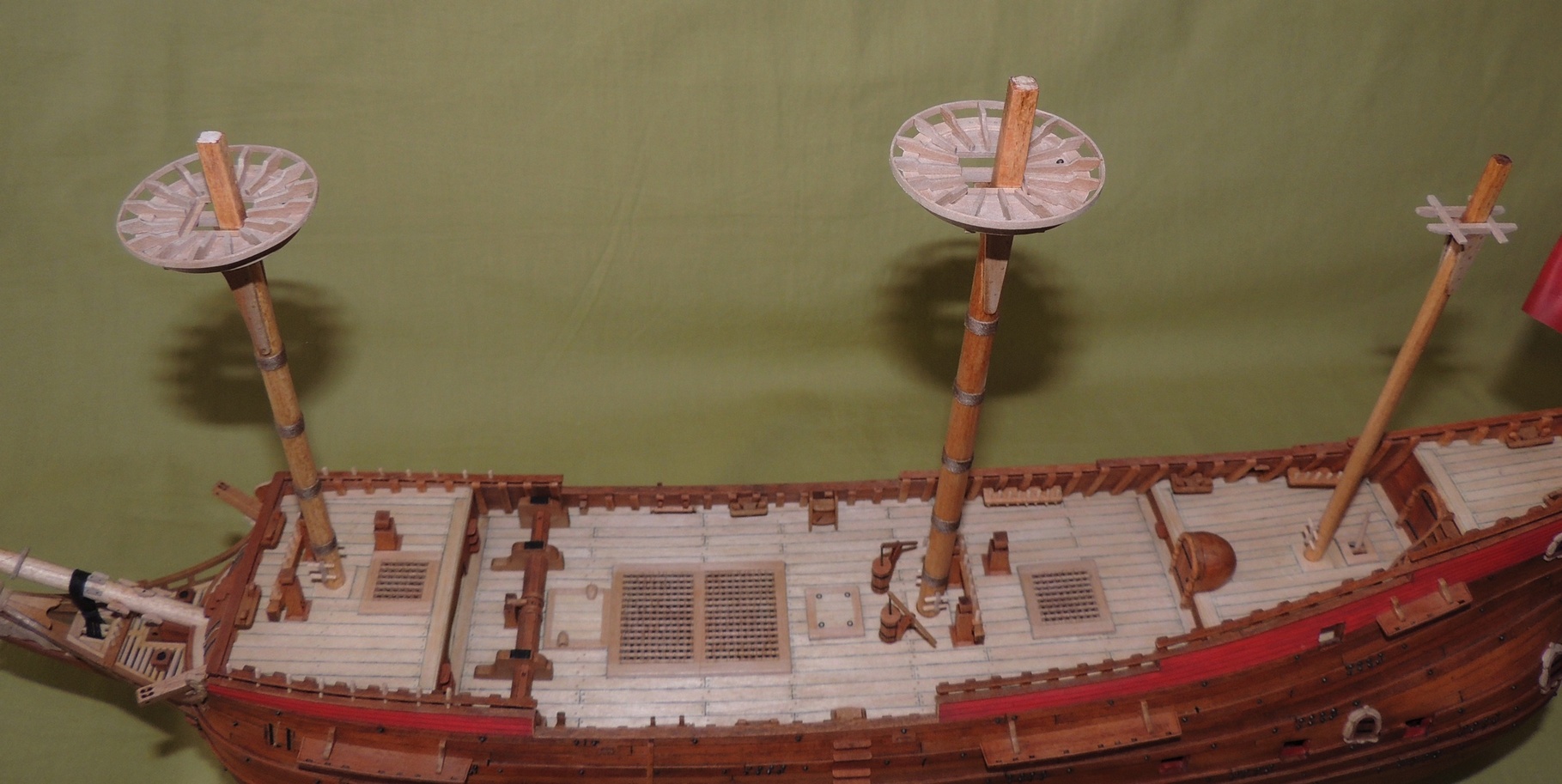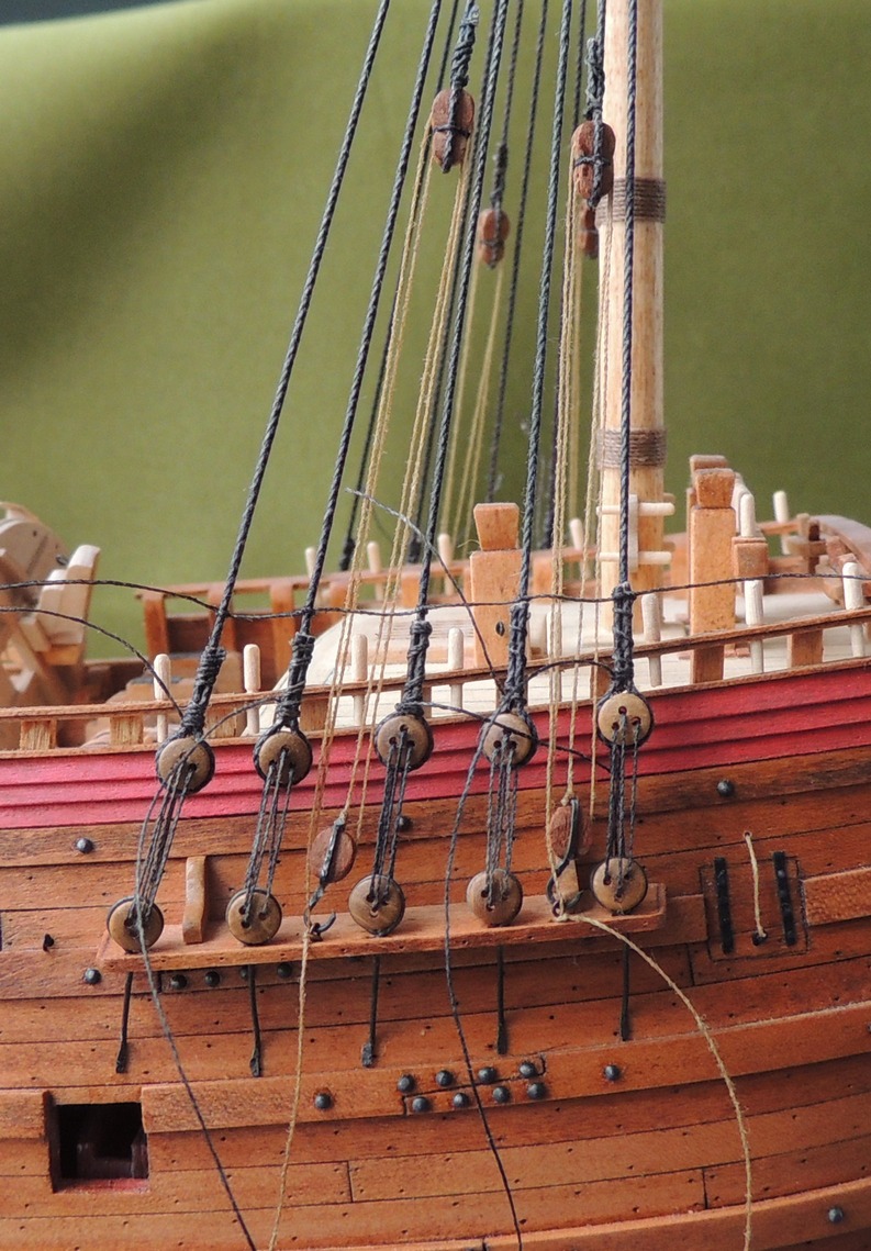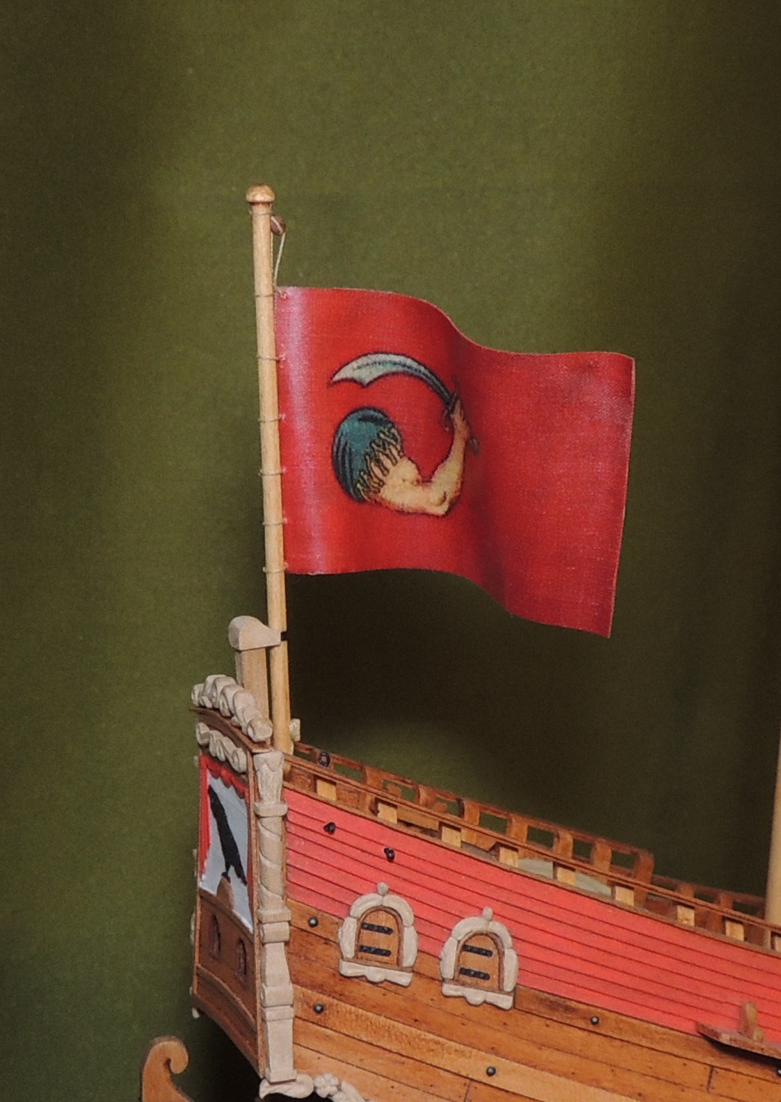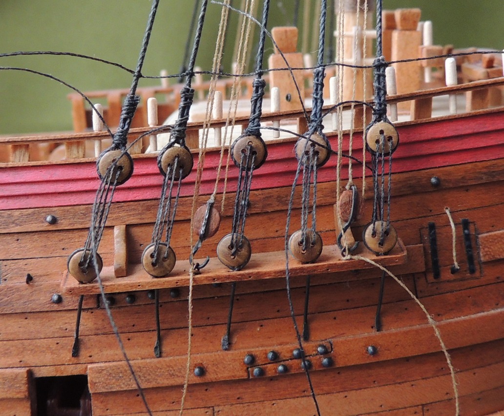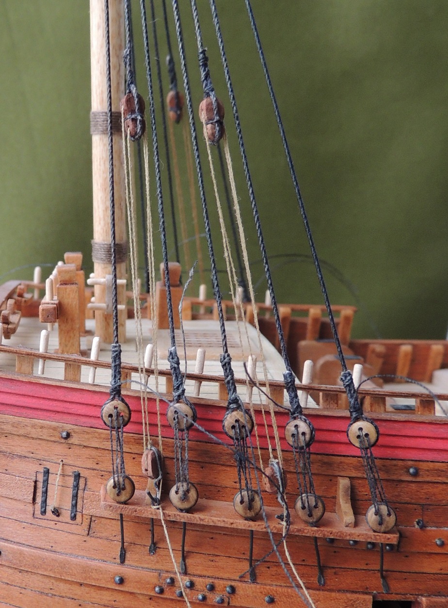 Jeszcze pytanie : Jak wciągane były flagi na maszty i flagsztok? Czy za pomocą bloczka, czy też, za pomocą krążka umieszczonego w drzewcu?