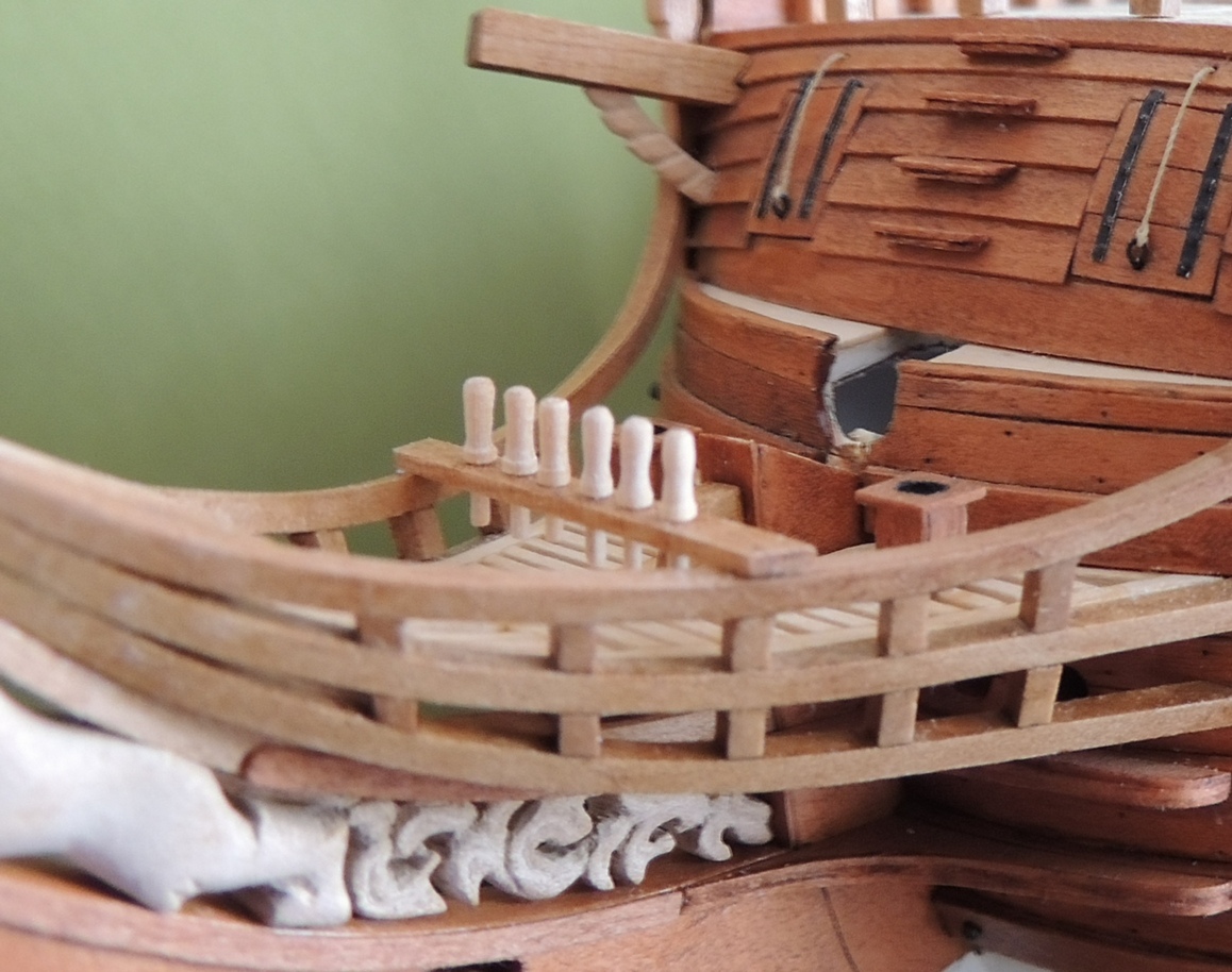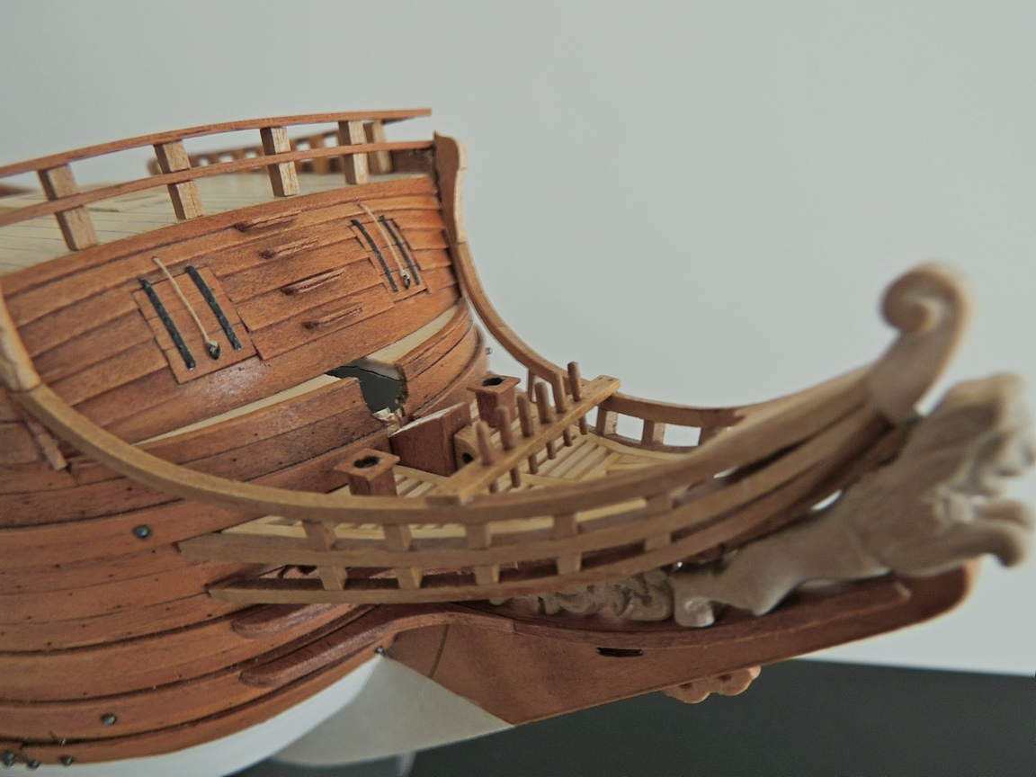 Witam. Świetna robota, pięknie wykonany kadłub, kolorek super, ale przyczepię się do nagli w kołkownicy. Wyglądają trochę topornie, znajdź kawałek małej wiertarki i wytocz sobie, to nic trudnego. Znacznie poprawi to wygląd całości, nawet jeśli nagle nie będą super powtarzalne.
