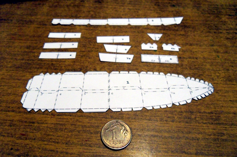 Przyznam, że pozytywnie zaskoczyła mnie jakość kartonu. Zobaczymy jak będzie ze składaniem. Liczę na podpowiedzi Kolegów, bo jak wspomniałem w kartonie jestem całkiem zielony. Pierwsza sprawa, spotkałem się z czymś takim, że maluje się karton caponem, to to jest konieczne, czy tylko w starszych wycinankach ? 2, jakie kleje polecacie, mam oczywiście cyjanopany pattex wood exspres , ale słyszałem o chińskim jakimś wodnym kleju do papieru, który jest podobno idealny ... model nie jest okazały, liczy zaledwie 12 cm dł, i można go zbudować jedynie do lini wodnej, łącznie to 213 części.