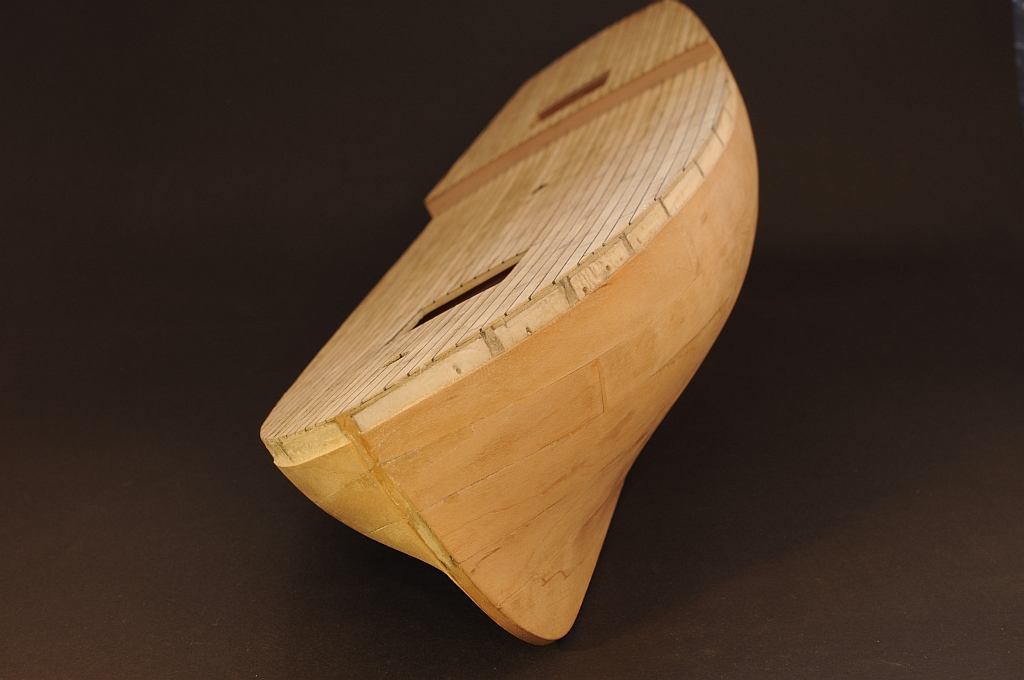 Zauważ tylko na przyszłość, że pokład ma naokoło listwę brzegową i deski pokładu nie są kończone szpicem. Ja w ten sposób co Ty robię te pokłady, które nie są potem widoczne w całości - bo szkoda pracy, jak i tak tego nie widać. Ale jest bardzo Ok, a w następnym modelu uszczegółowisz ten element...