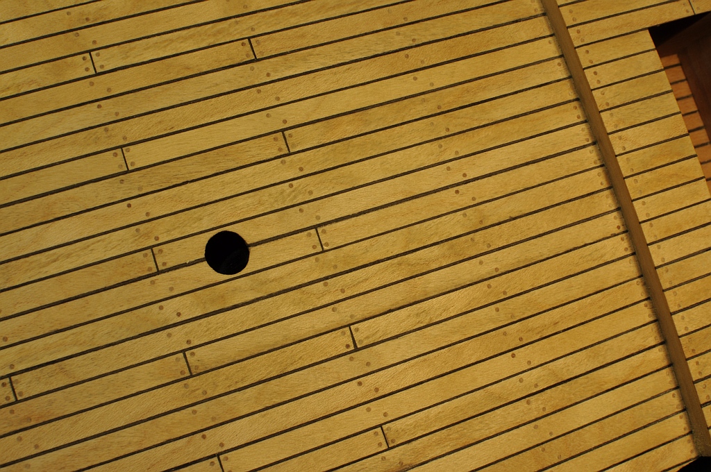 Poprawiłem deskowanie pokładu. Stare jakoś mi nie pasowało. Nowe deski są minimalnie węższe (niewielka różnica, ale …).