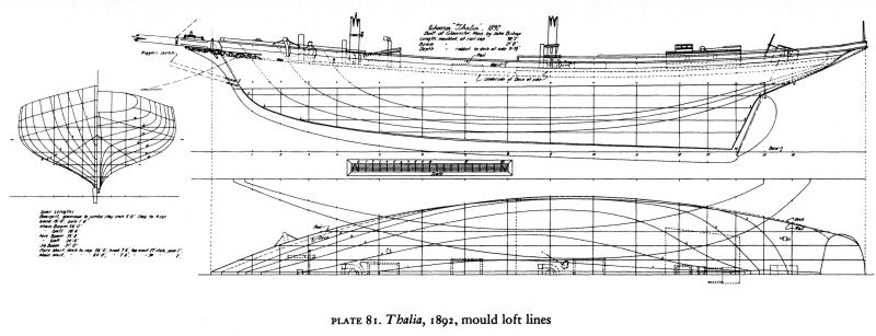 Oba opracowania jako nie spełniające moich i tak skromnych "wymagań" więc odłożyłem na półkę i rozpocząłem szukanie materiałów zarówno w sieci jak i poprzez fora i znajomych. Dzięki ponad półrocznej pracy udało mi się uzyskać nie tylko spory zasób informacji co do konstrukcji jachtów z tego okresu, ale również pozyskałem plany z archiwum zza oceanu. Swoje przemyślenia konsultowałem z dość dużą ilością osób zajmujących się modelarstwem szkutniczym, co niejako jest zrozumiałe, gdyż temat szkutniczy (a w dodatku z żaglami) dla mnie nieznany i musiałem go przegryźć aby jacht nie dostał czasem skrzydeł ;)