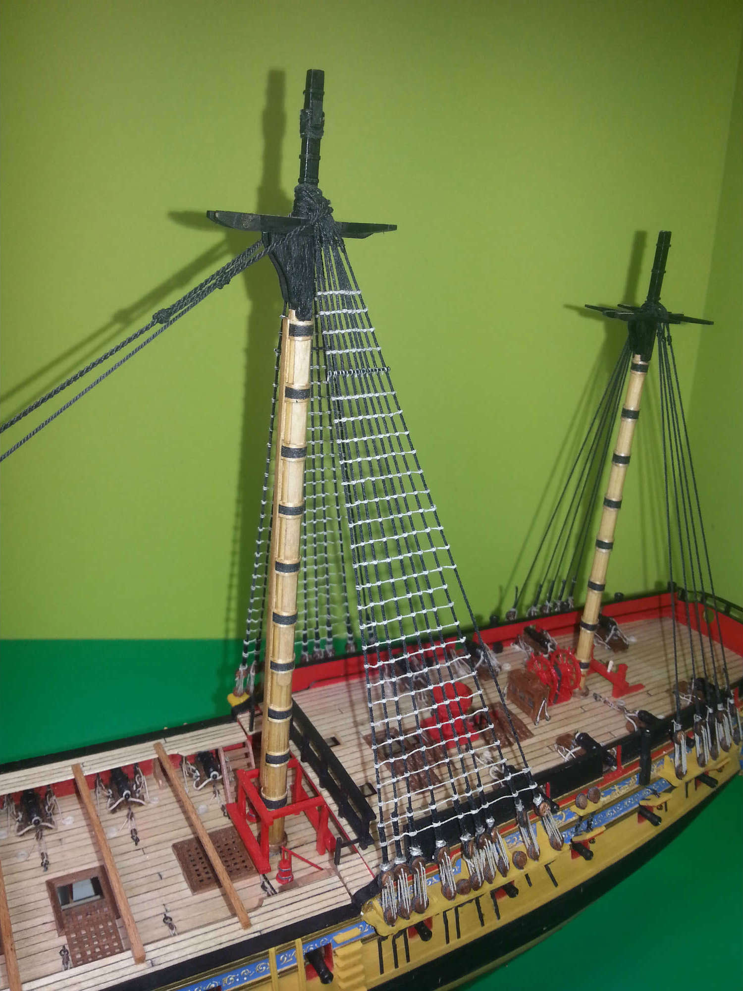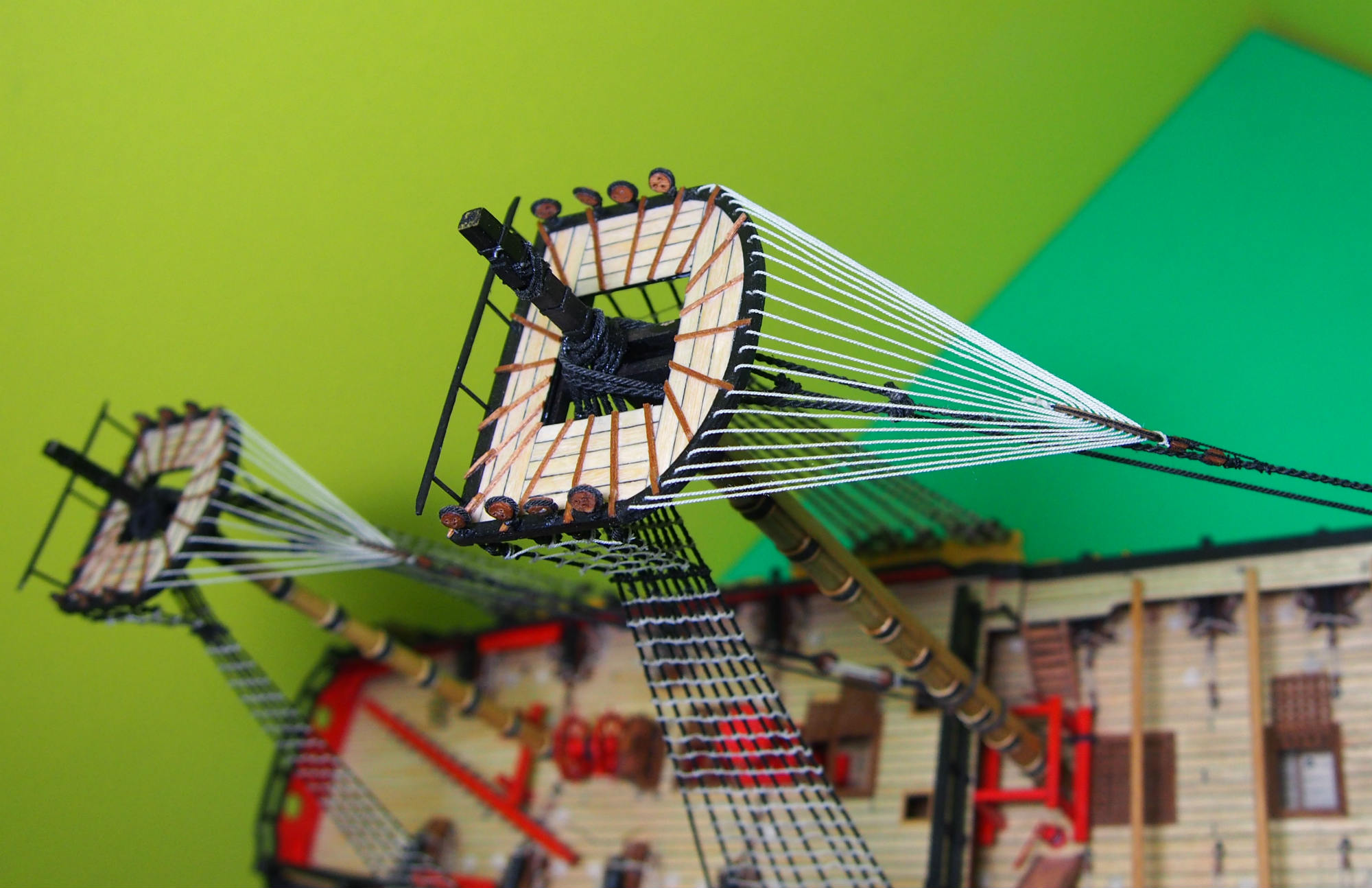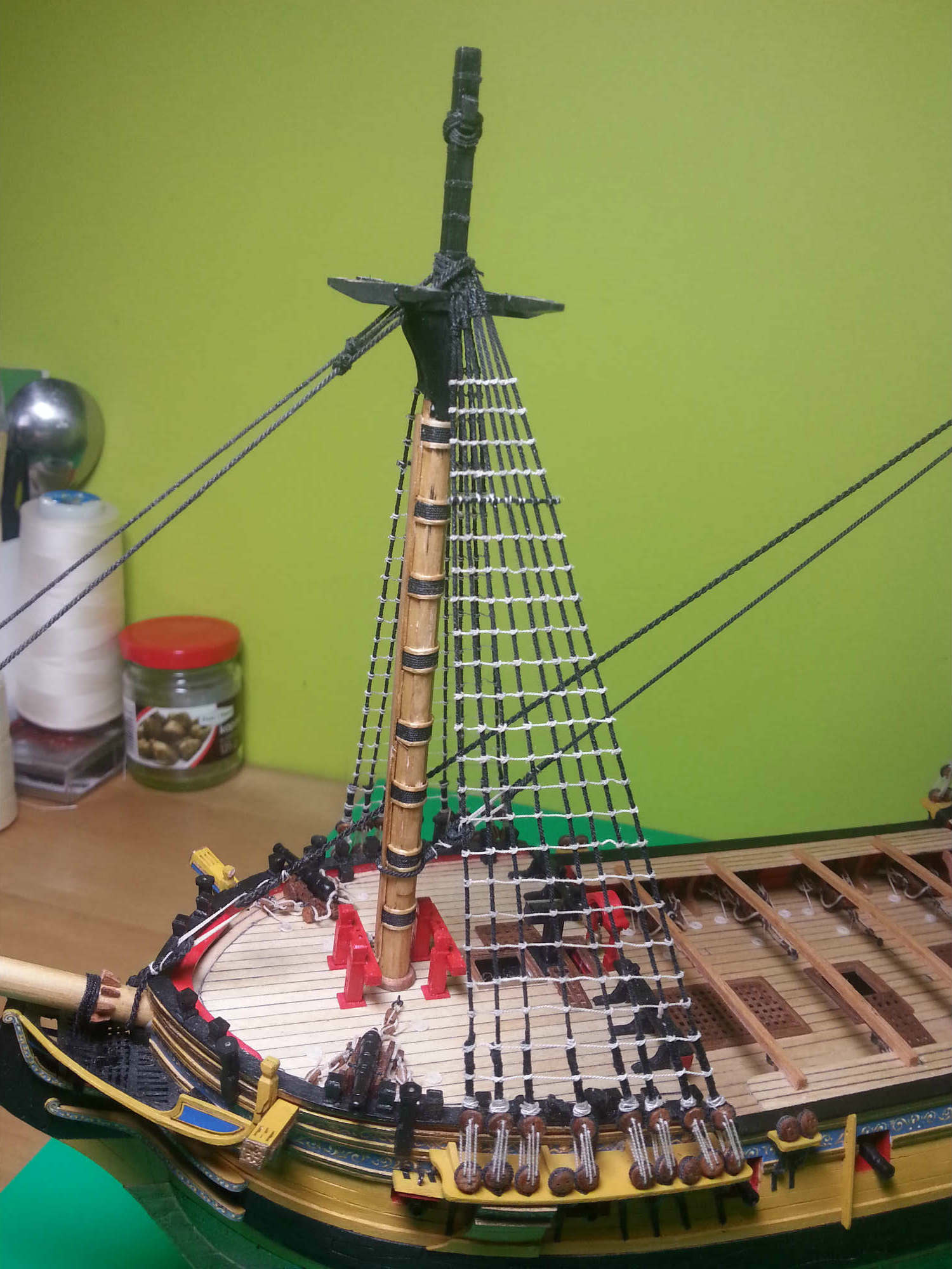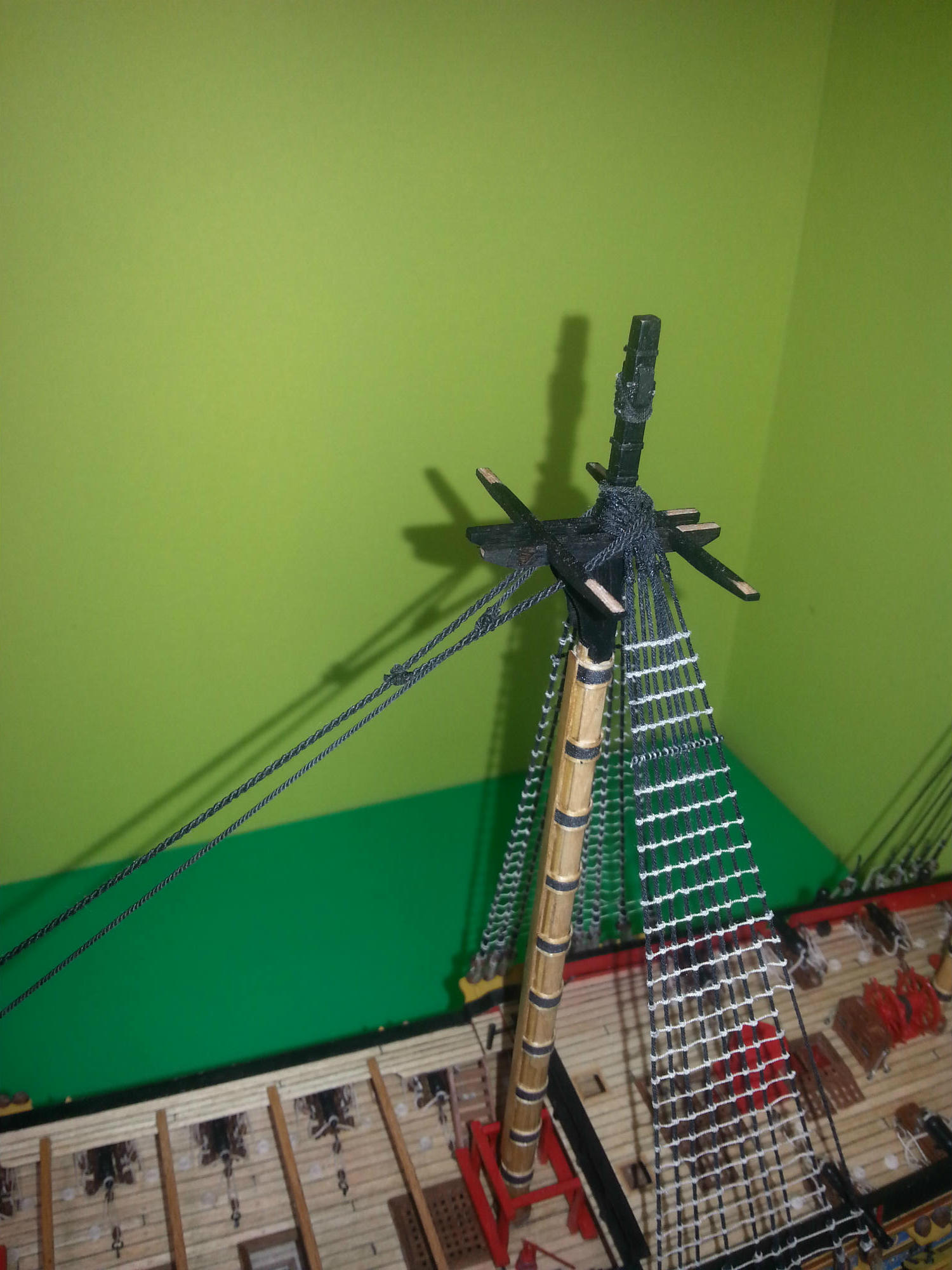 Czas zacząć prace nad kolejnymi etapem, bocianie gniazdo fokmasztu na miejscu.