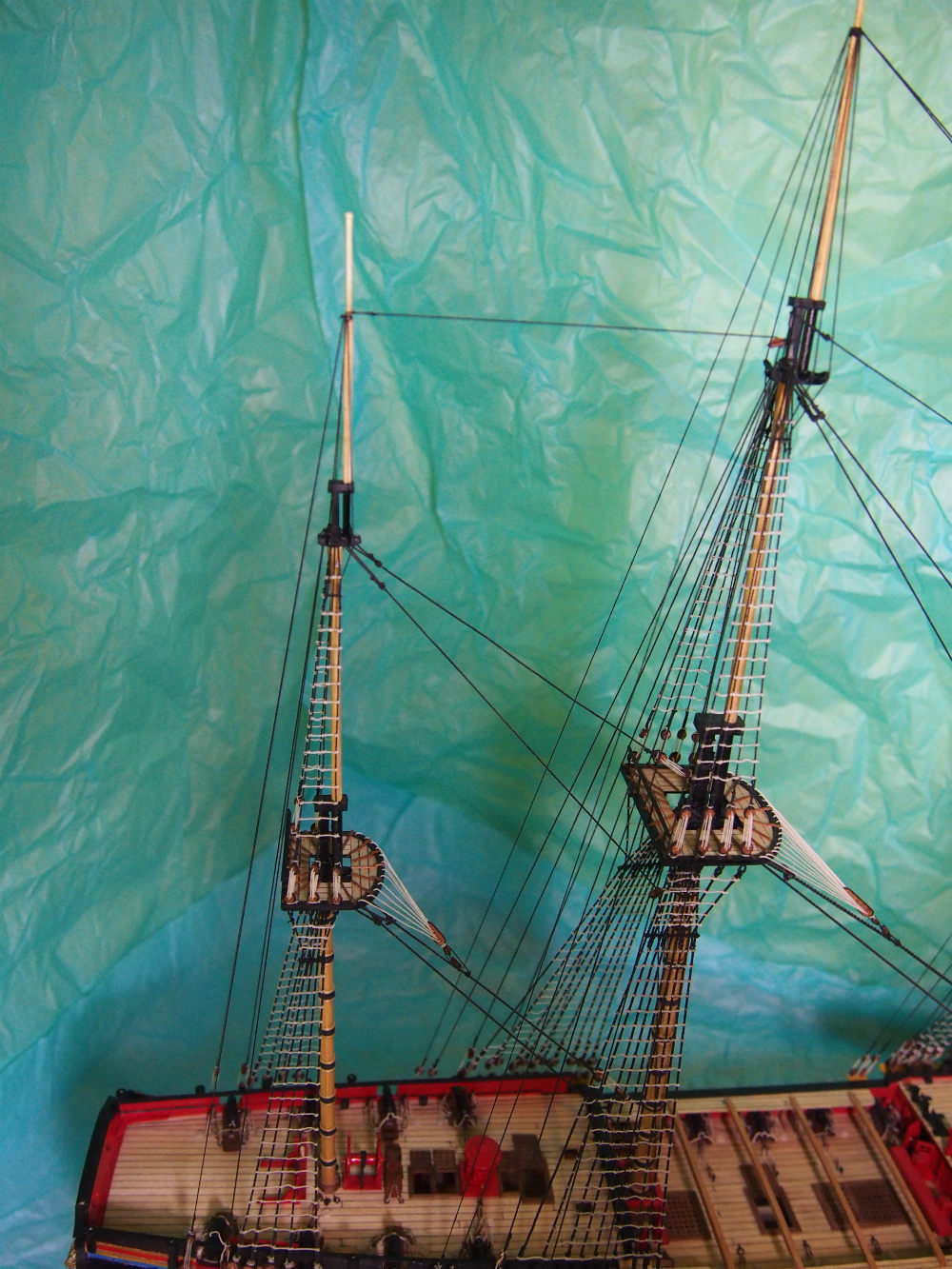 Widzę, że mocno popędziłeś z budową. Olinowanie wygląda super. Ja kończę montować artylerię i też zabiorę się za maszty i olinowanie. Będę mógł podpatrzeć co nieco u Ciebie bo przecież nasze modele są podobne.