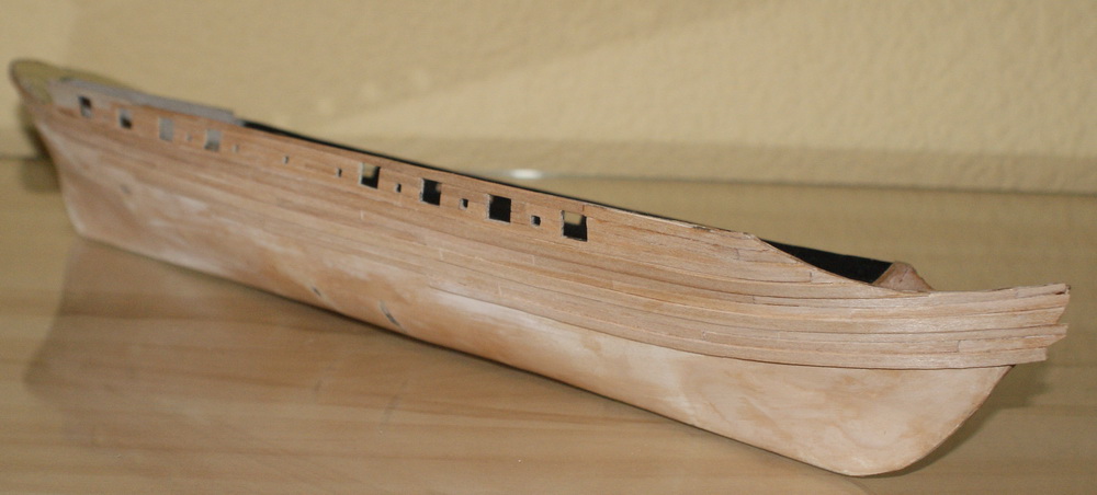 rozpocząłem budowę szebeki (okręt piratów berberyjskich). Kadłub ma w tej chwili długość 390 mm i szer. 90 mm. Skala modelu 1:100