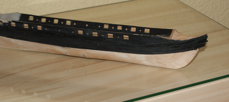 rozpocząłem budowę szebeki (okręt piratów berberyjskich). Kadłub ma w tej chwili długość 390 mm i szer. 90 mm. Skala modelu 1:100