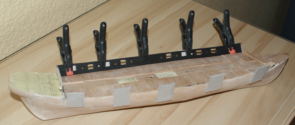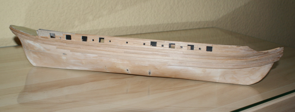 rozpocząłem budowę szebeki (okręt piratów berberyjskich). Kadłub ma w tej chwili długość 390 mm i szer. 90 mm. Skala modelu 1:100