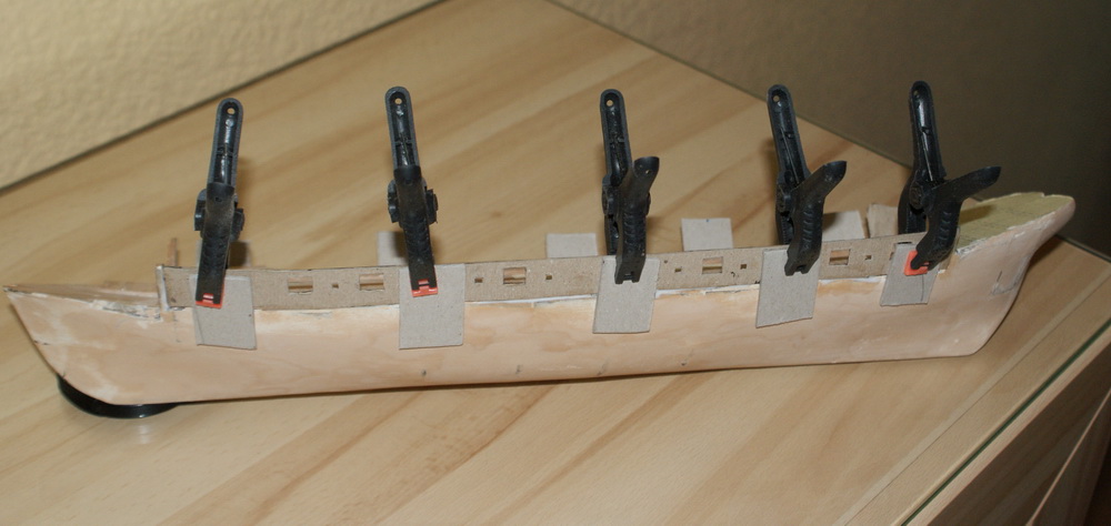 Model od odbojnic w górę, zostanie również zabarwiony tym tuszem. Kadłub pozostanie w kolorze drewna