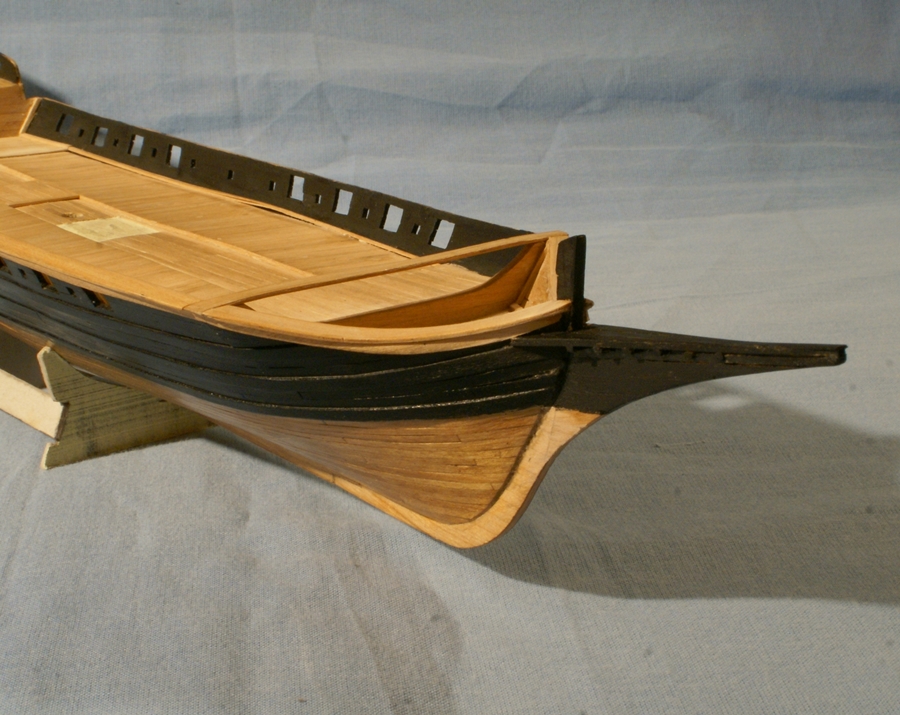 Witam, zamontowałem prowizorycznie pokłady rufowe (2-3 kropelki kleju). Teraz będzie można wszystko pomierzyć i wykonać nadburcia rufy