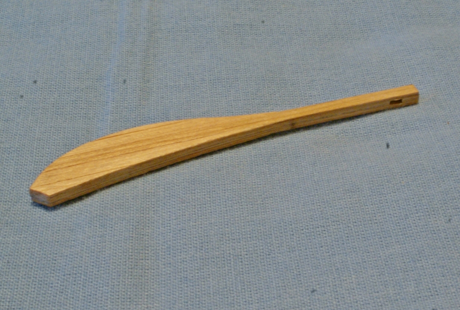 Ster został wykonany z 6 warstw forniru 0.5 mm. 4 warstwy to pełny zarys steru, z tym że 2 wew. warstwy z przerwą, która utworzyła otwór na rumpel.