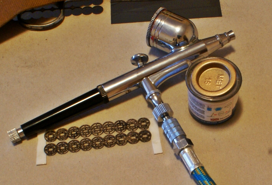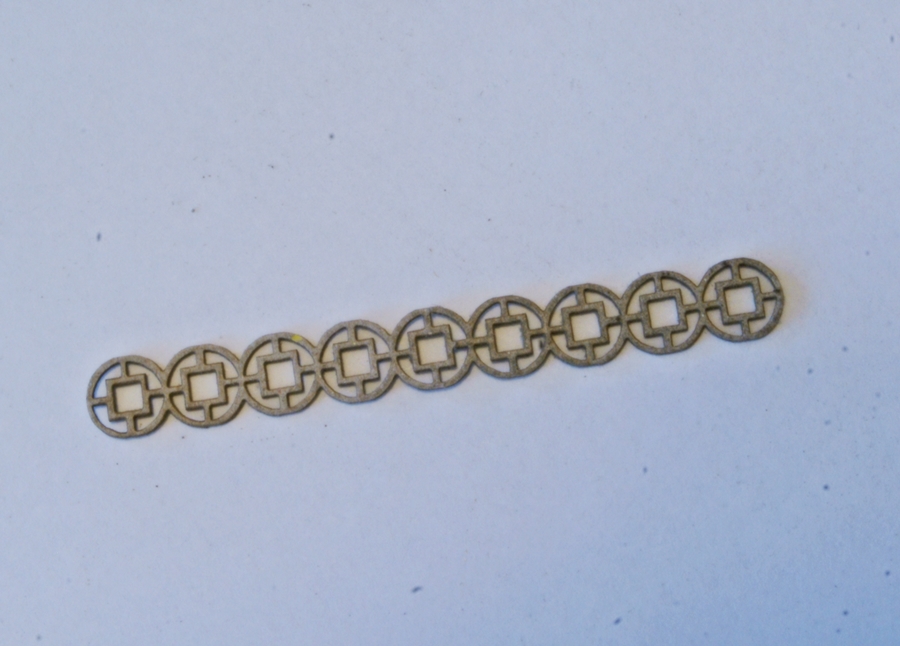 jedna strona ażuru zaimpregnowana caponem, druga zabarwiona czarnym tuszem. Strona zaimpregnowana caponem będzie malowana humbrolem.