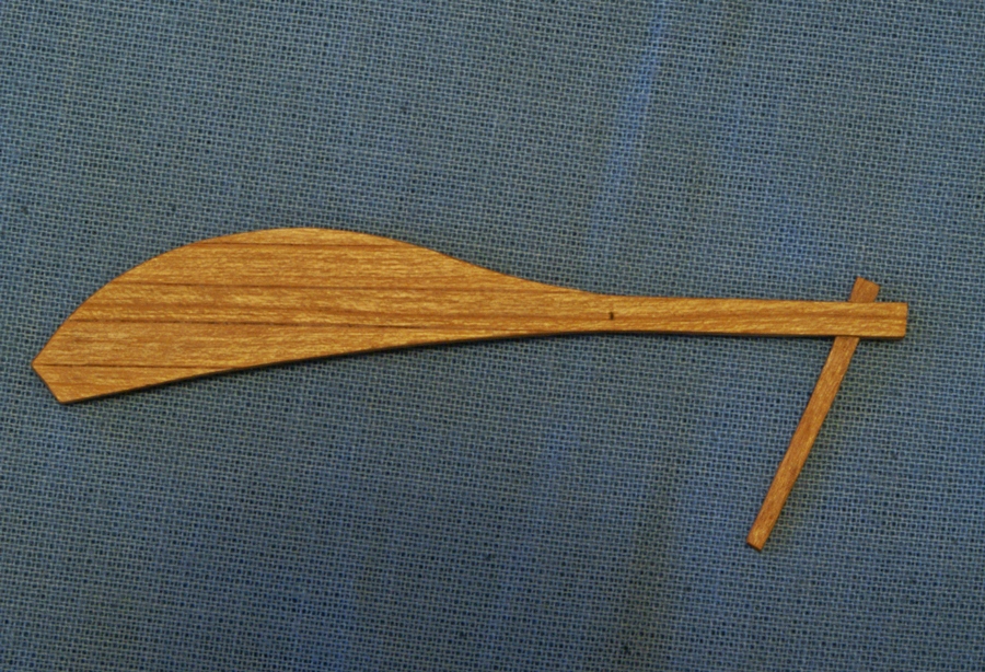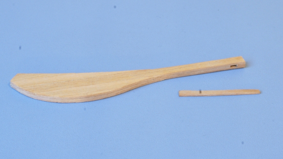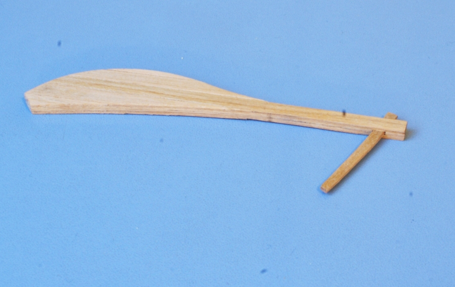 Ster został wykonany z 6 warstw forniru 0.5 mm. 4 warstwy to pełny zarys steru, z tym że 2 wew. warstwy z przerwą, która utworzyła otwór na rumpel.