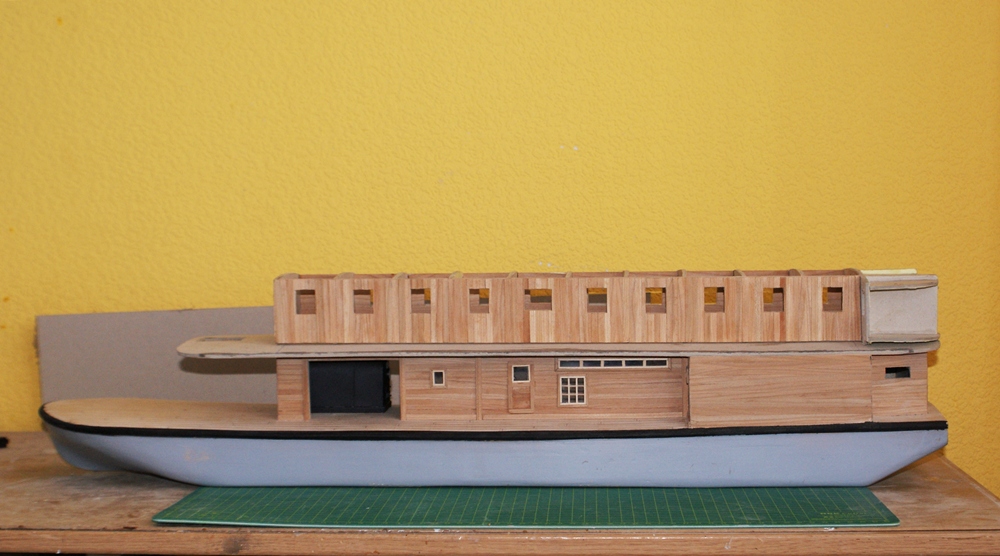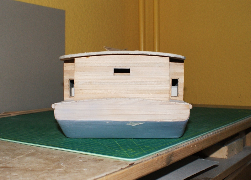 Nadbudówka sklejona. Kolej na oklejanie jej paseczkami forniru.