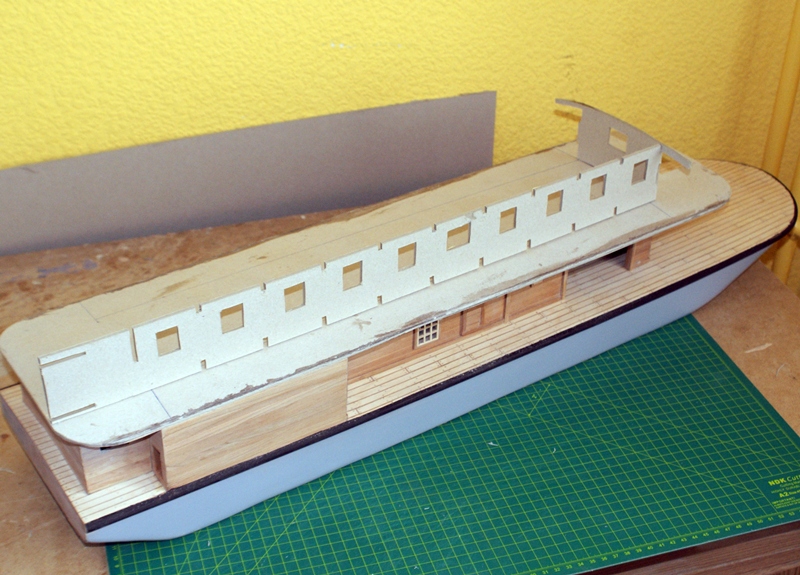 Na rufie konieczna poprawka - taśma za pomocą której mocowałem klejony pokład, zerwała trochę podkładu.